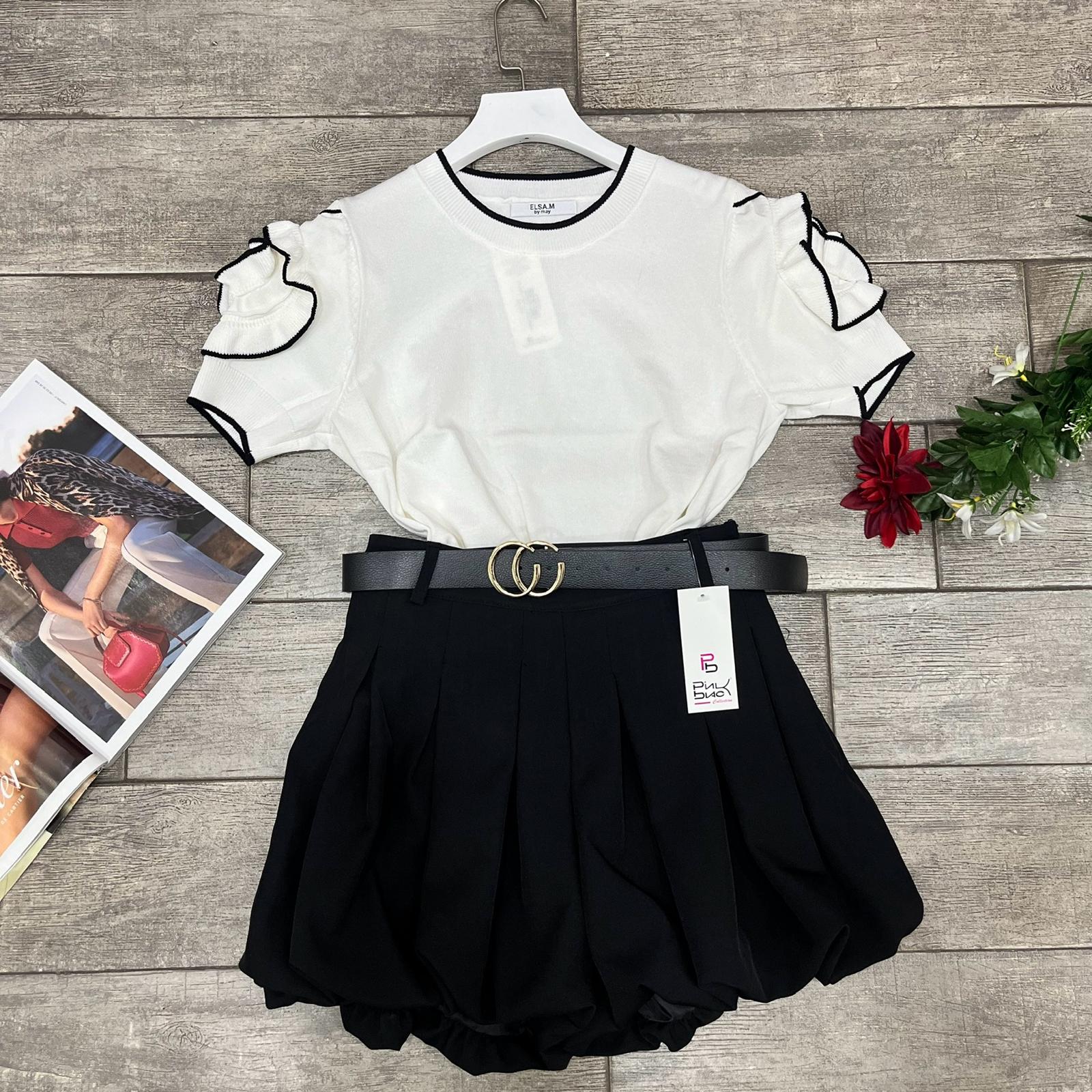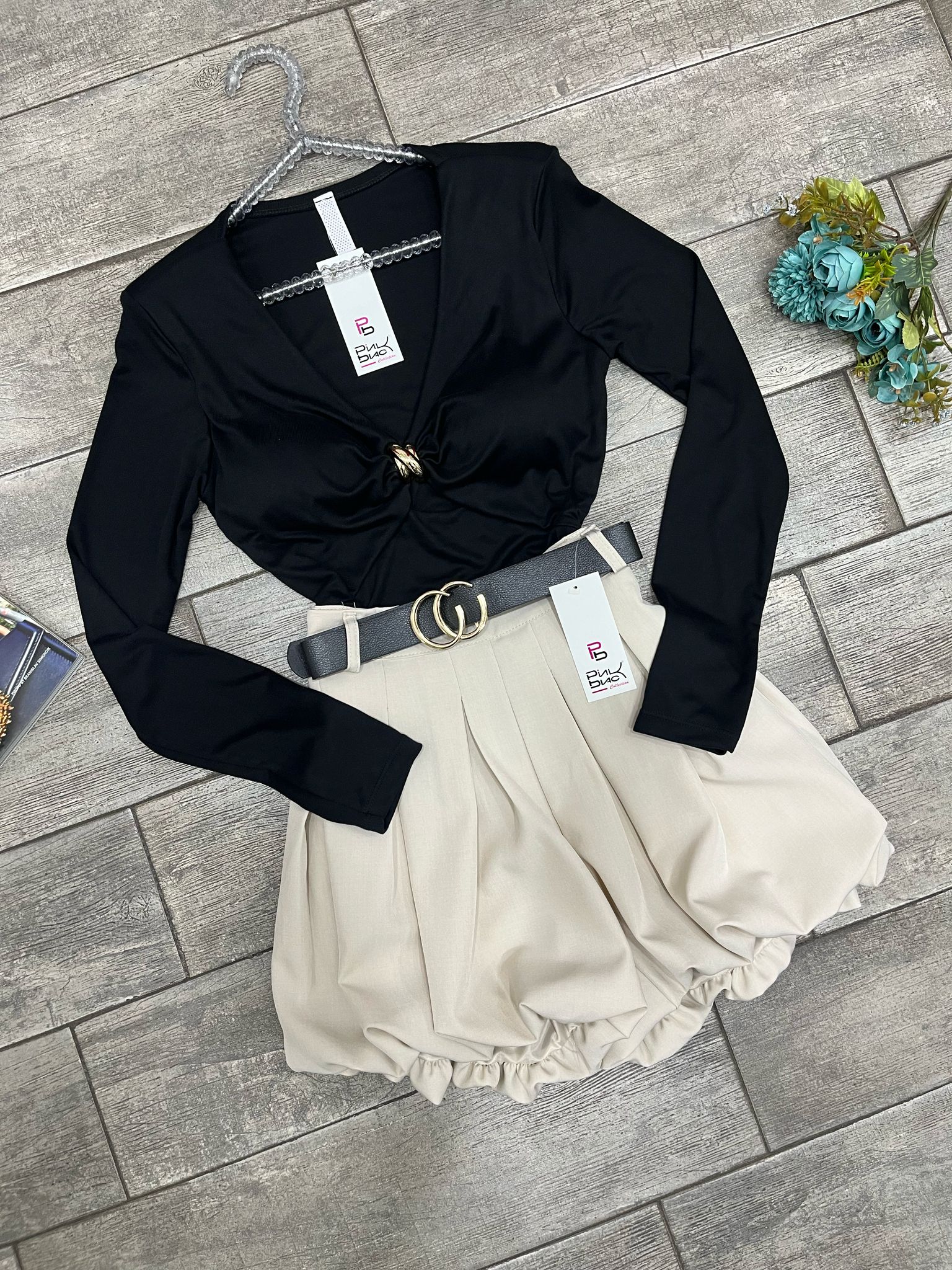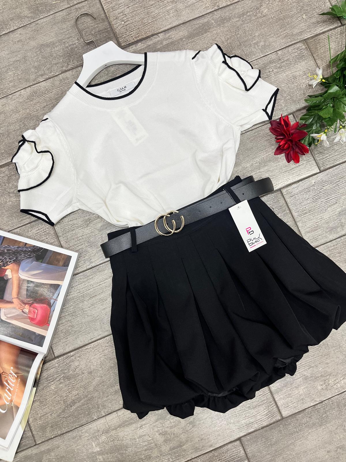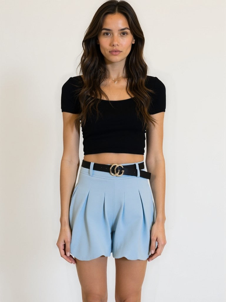 Pantaloncino in tessuto strutturato con cerniera laterale e cintura inclusa