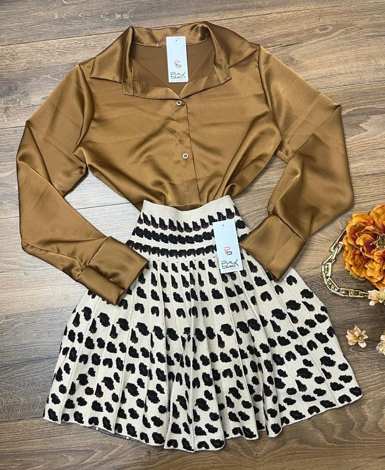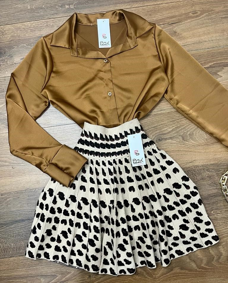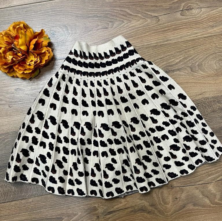Gonna in viscosa con fantasia animalier e pinces. Fabbricato all'estero.