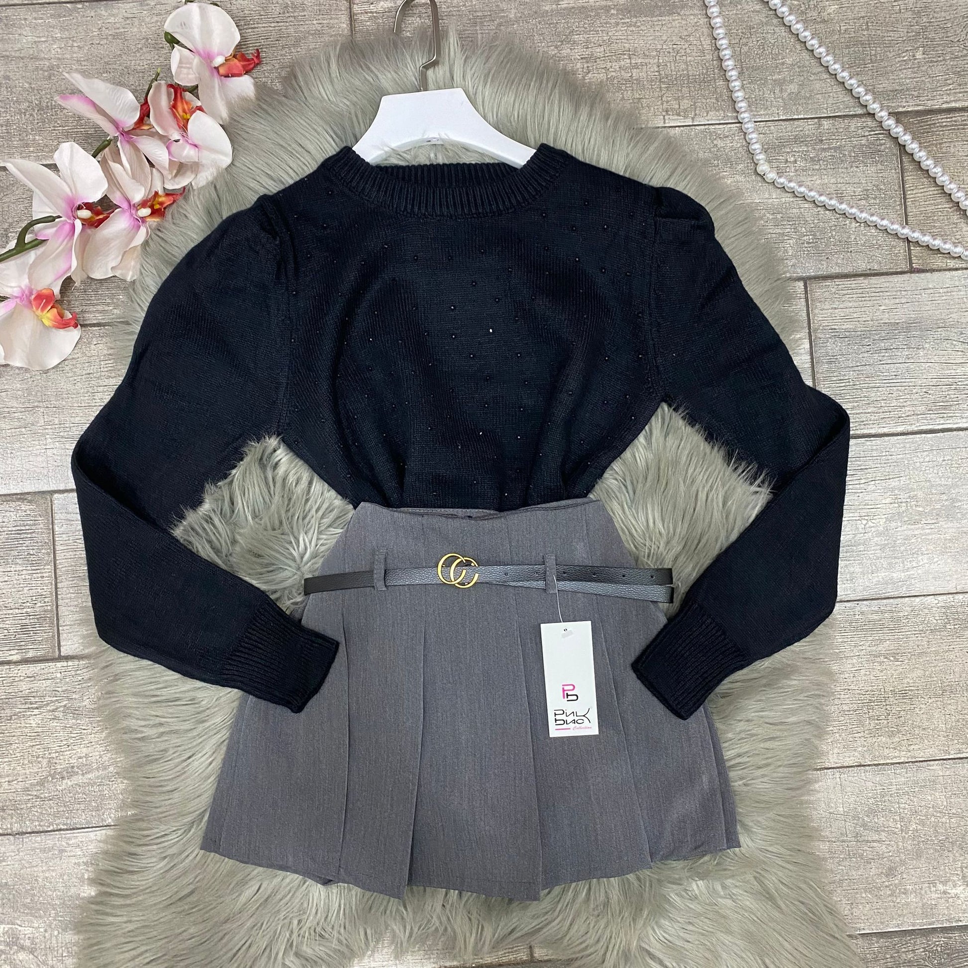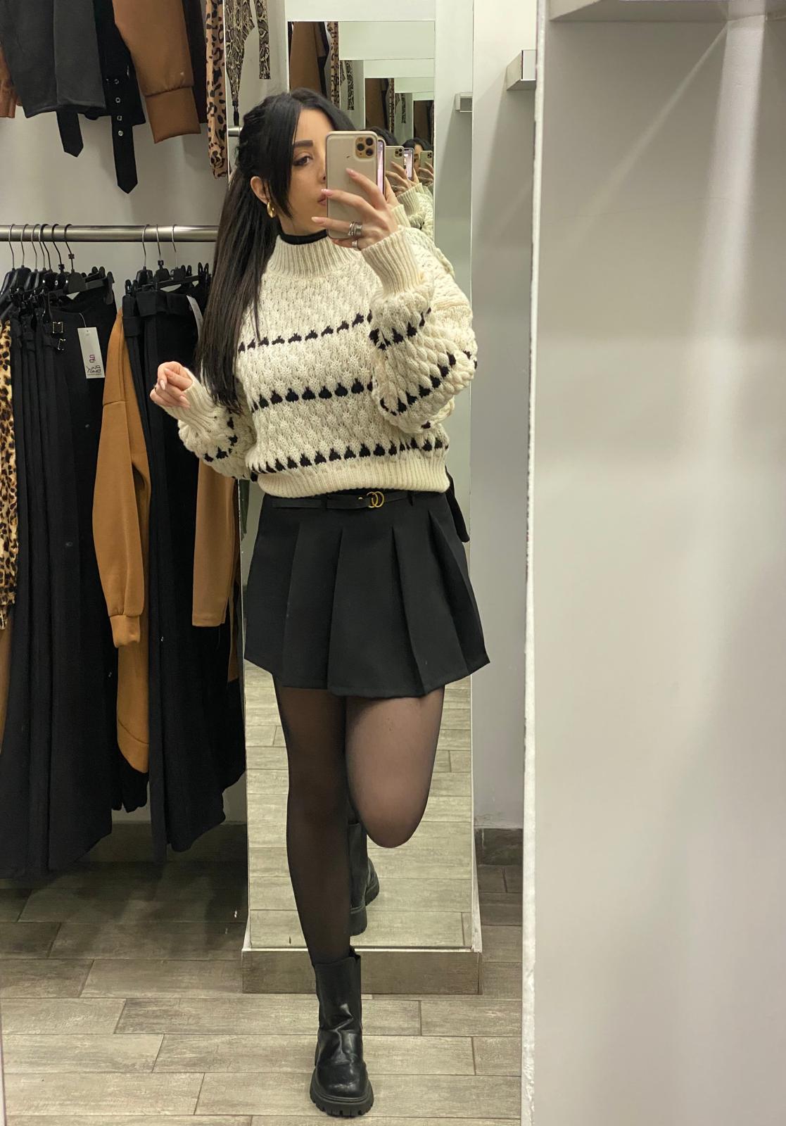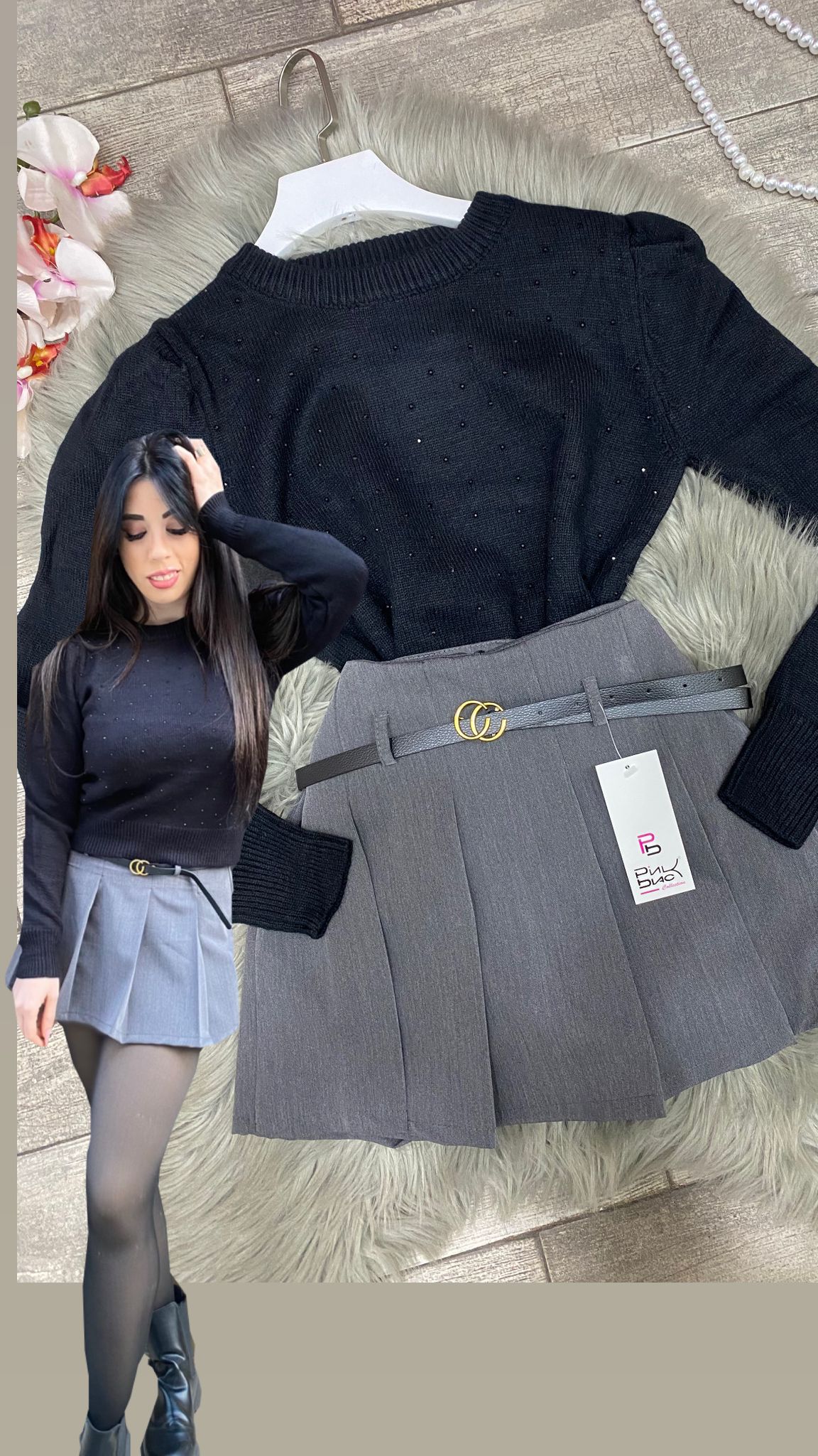Pantagonna in tessuto strutturato plissettata con cintura inclusa