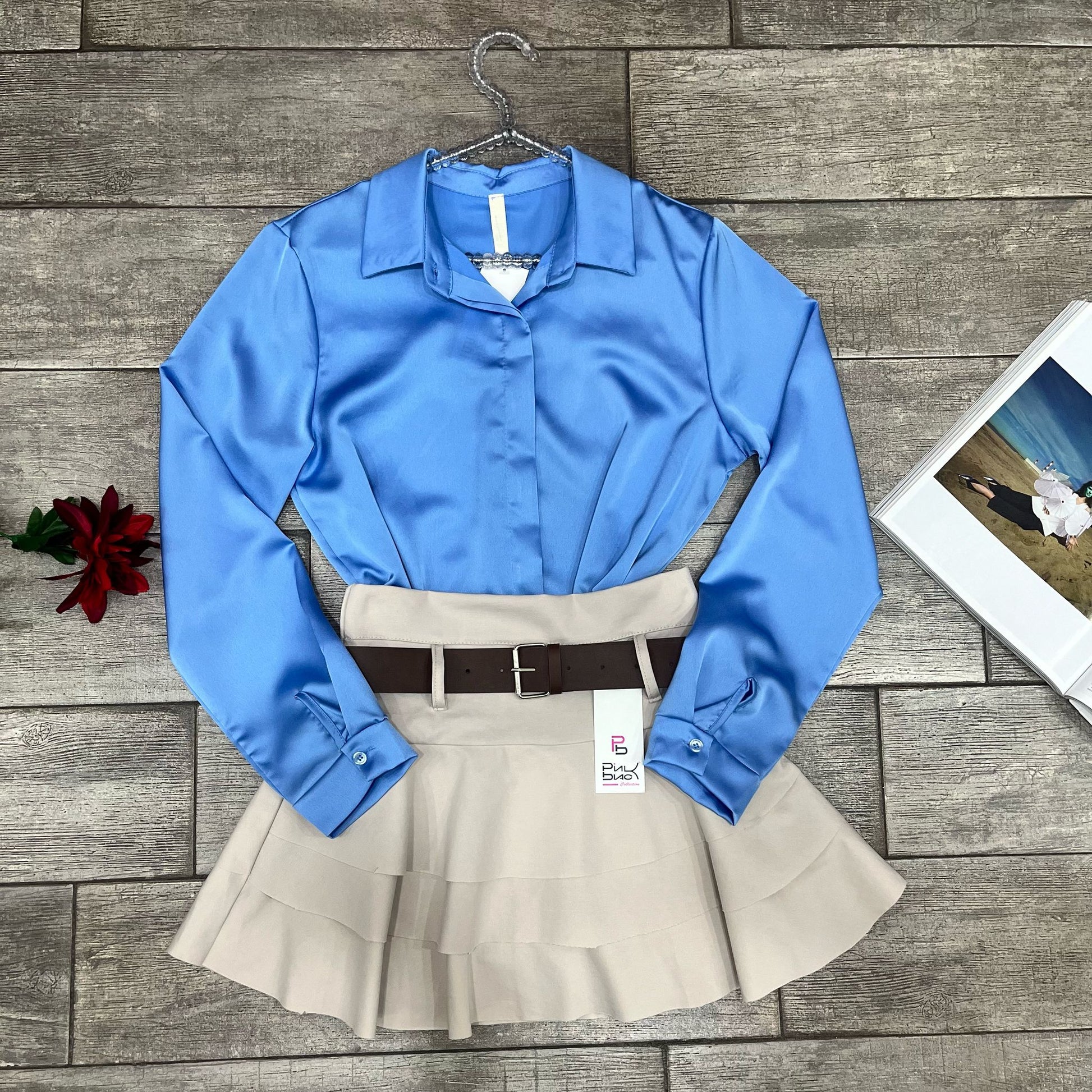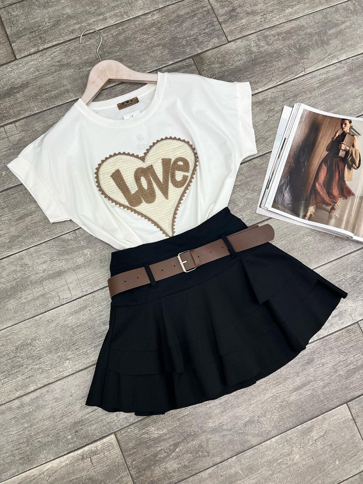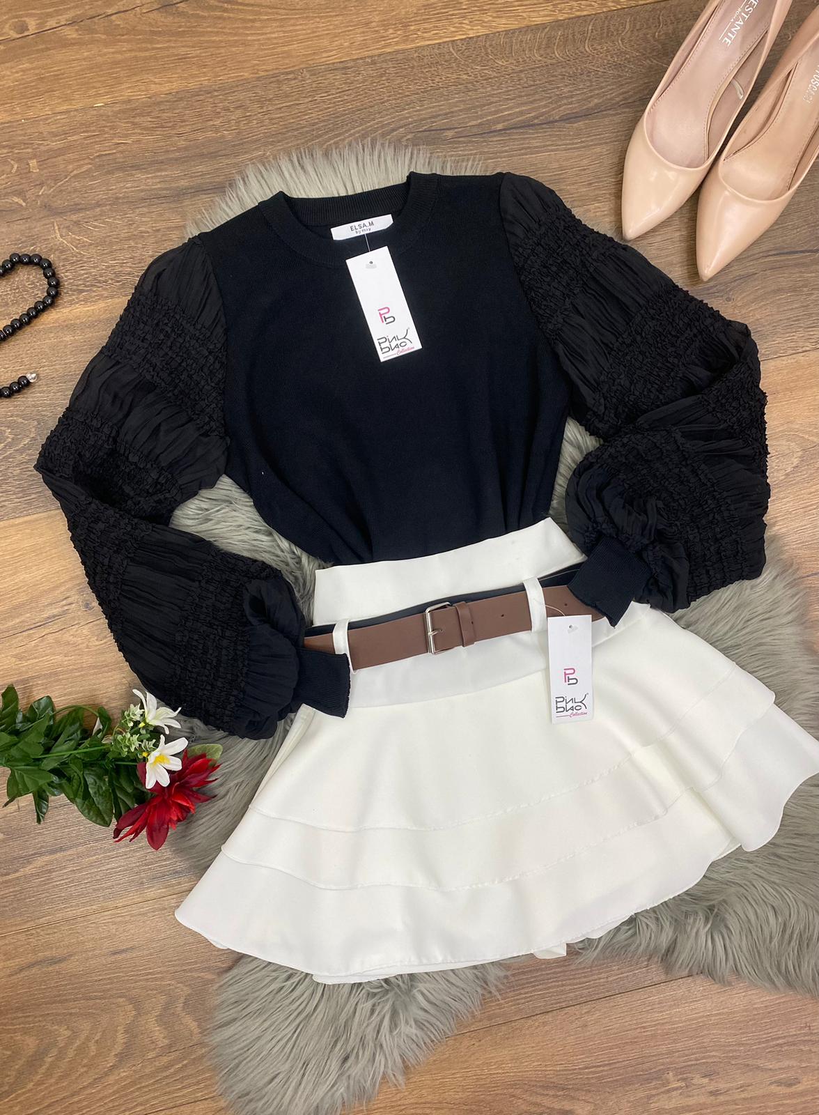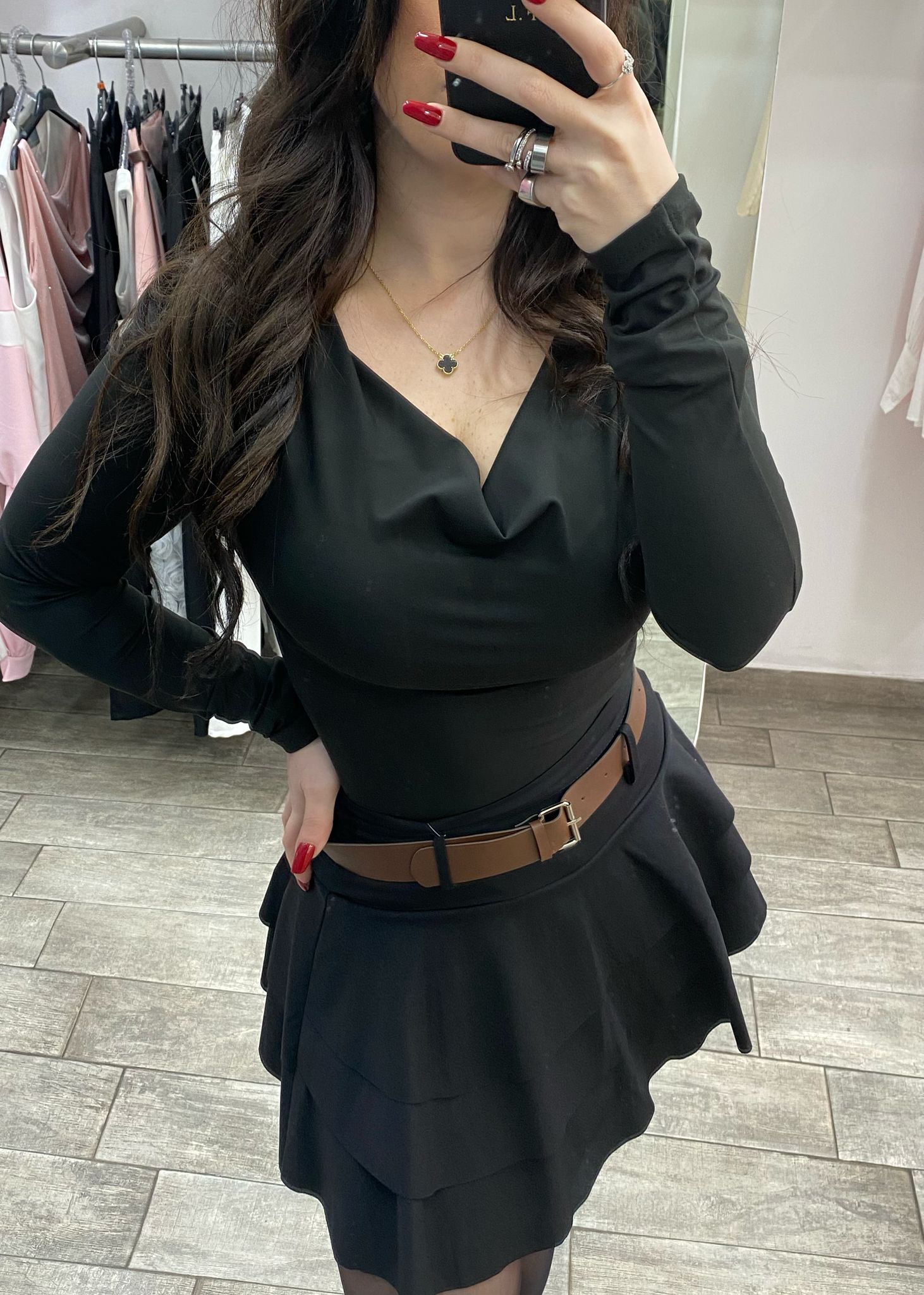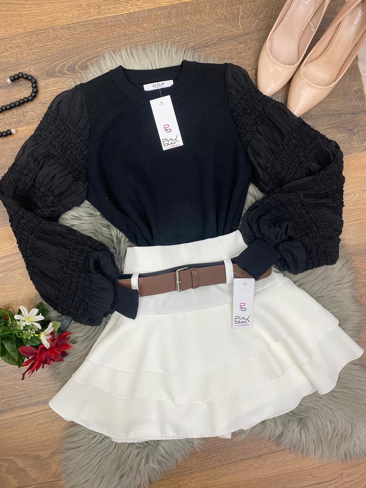 Pantagonna in tessuto scuba crepe con elastico sul retro in vita, balze e cintura inclusa.