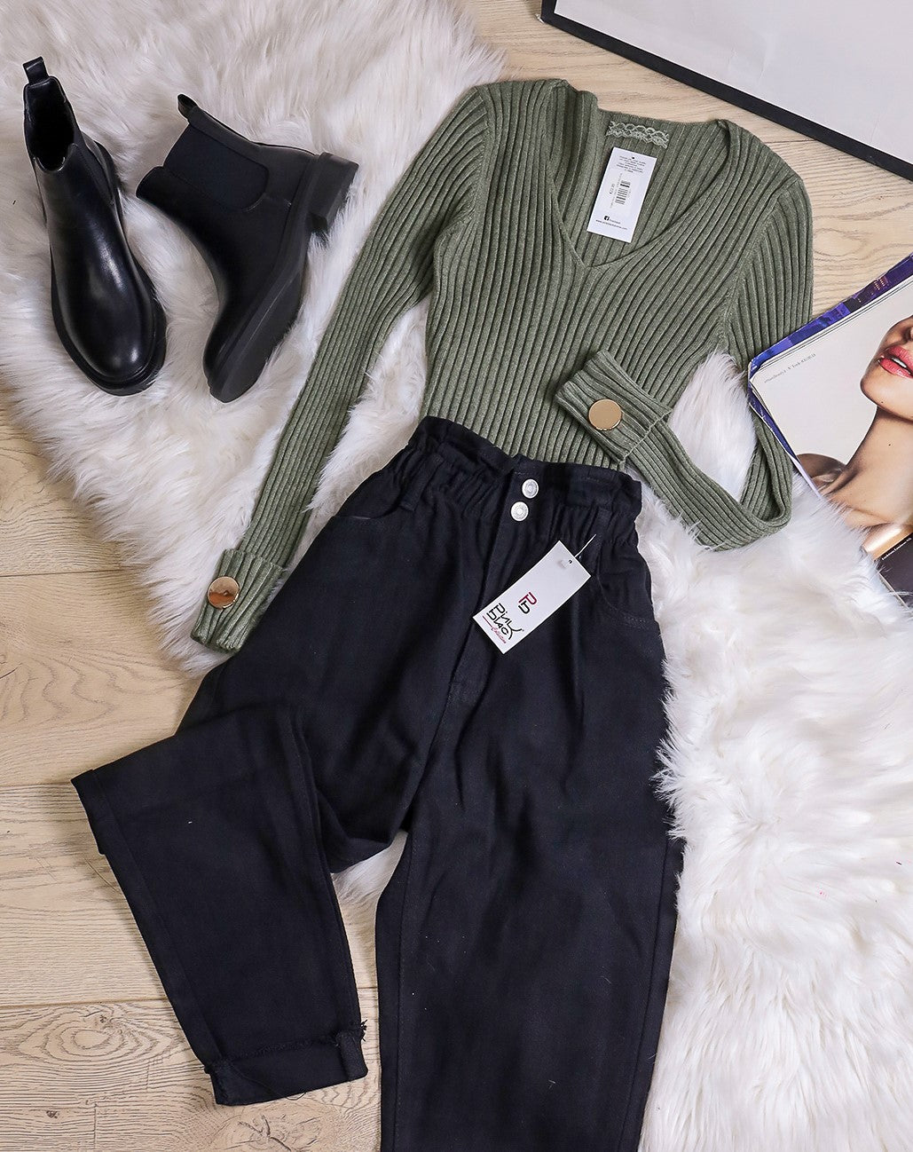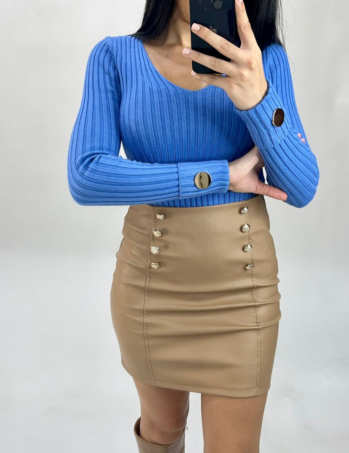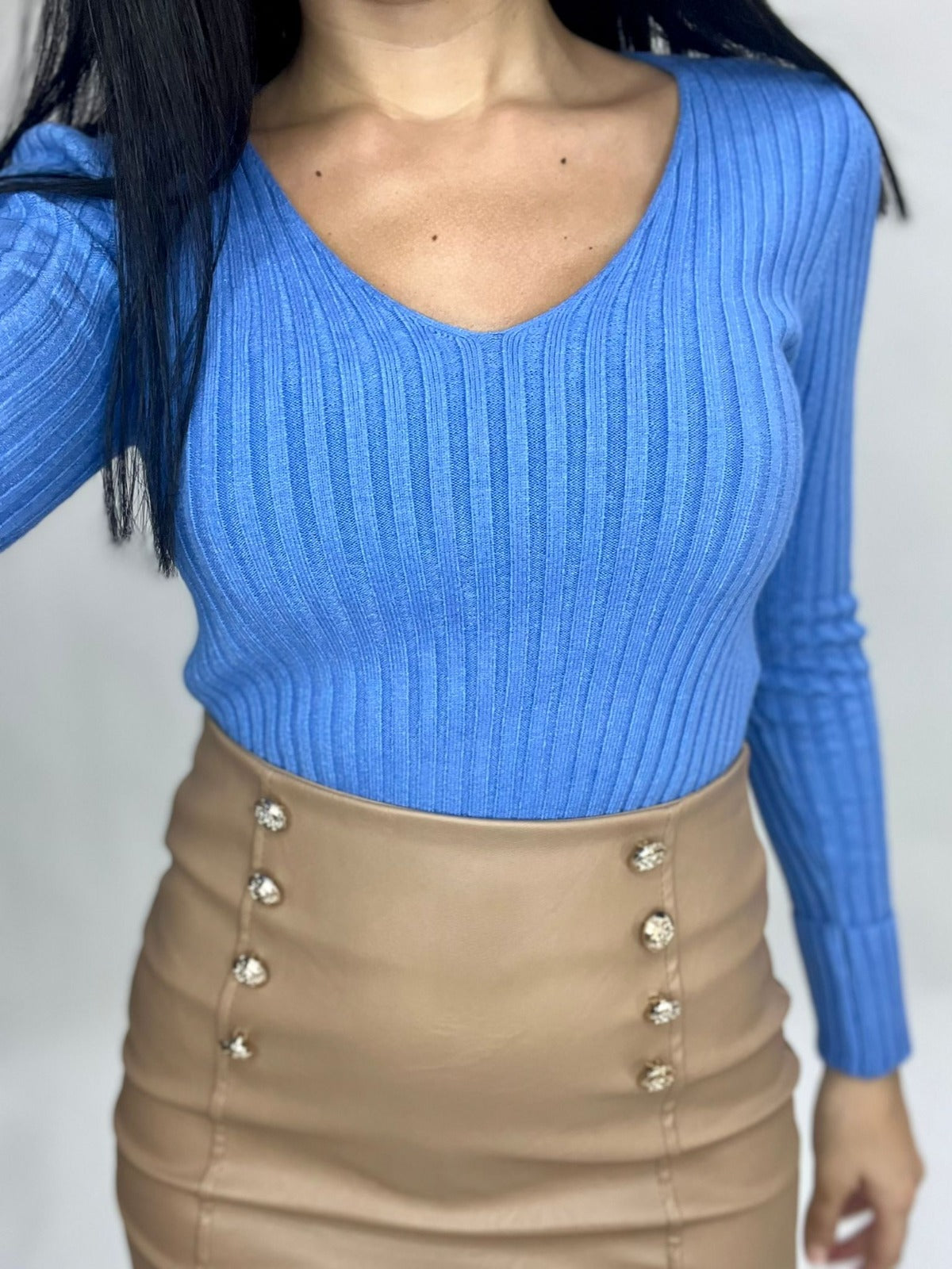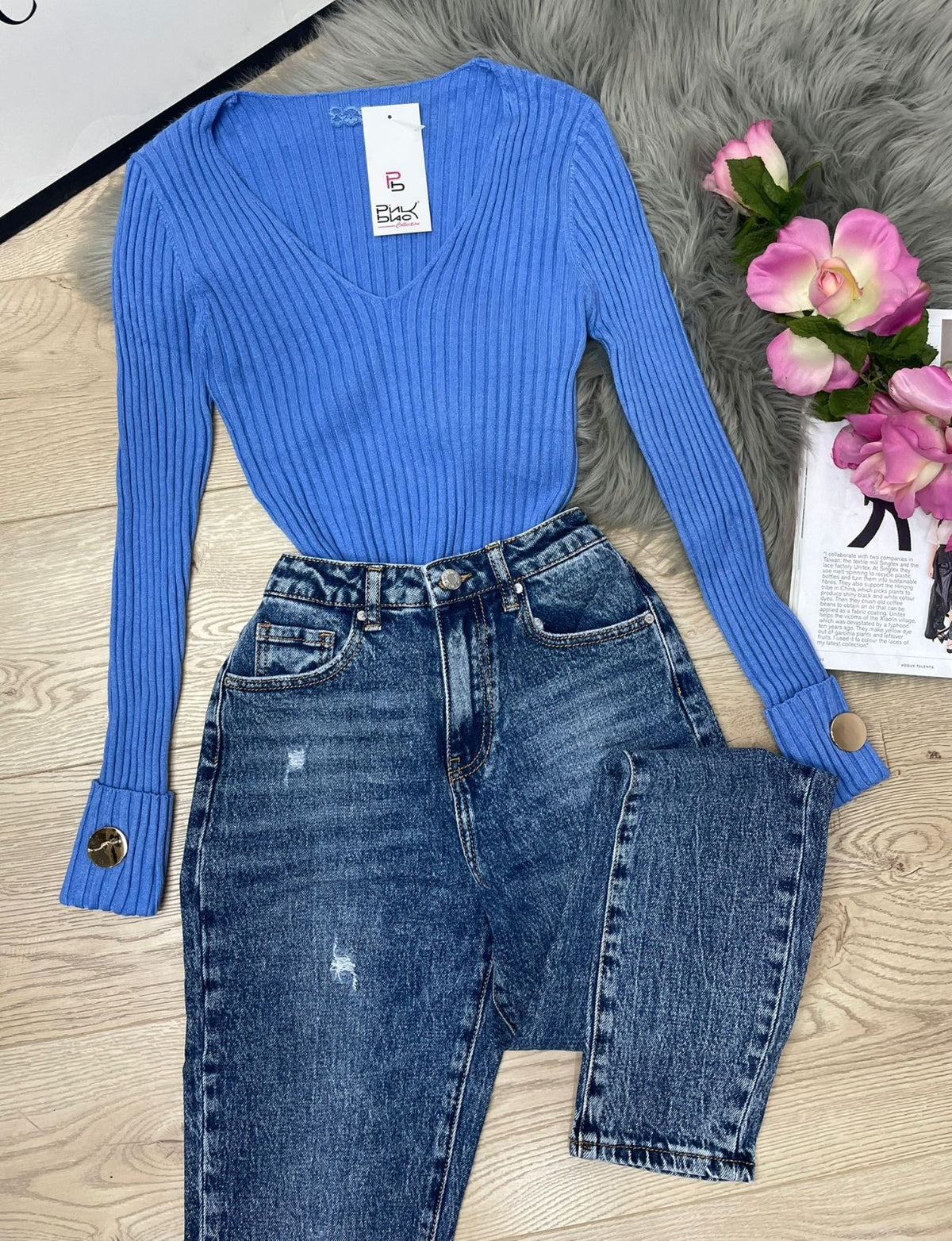 Maglia a costine con manica lunga con risvolto e bottone. Fabbricato in Italia.