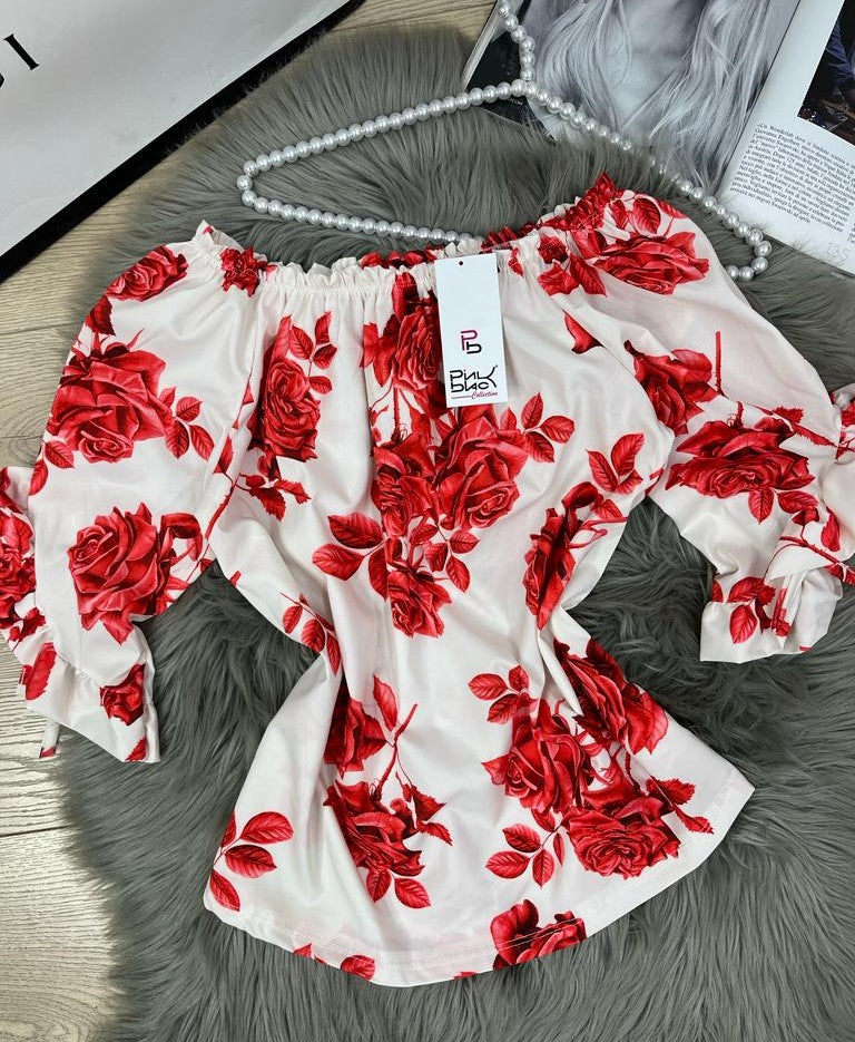Maglia in tessuto strutturato con fantasia floreale. Fabbricato in Italia.