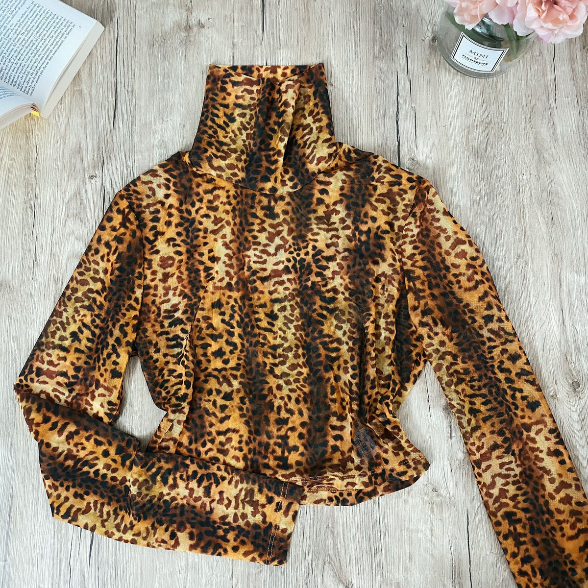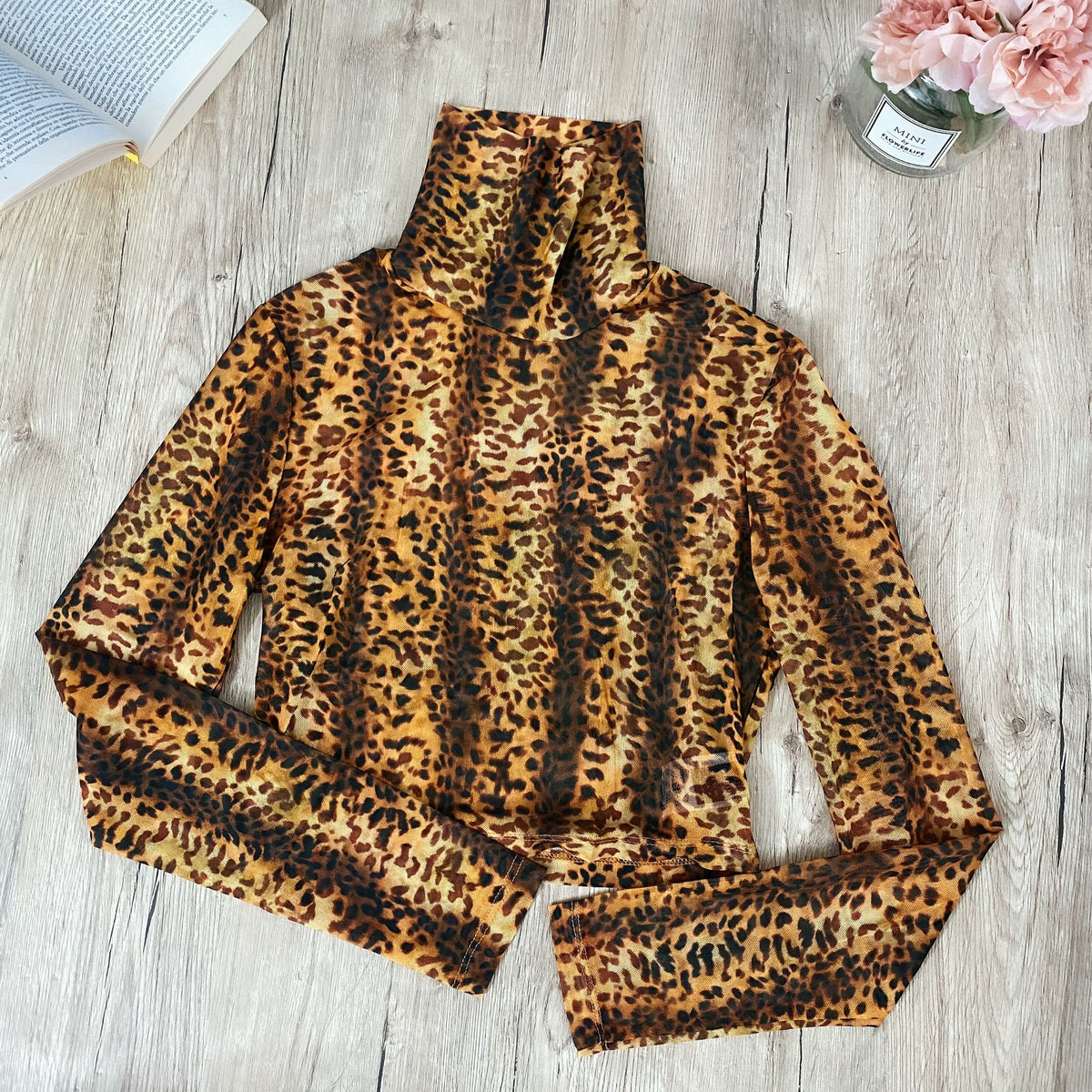 Maglia modello corto velata con fantasia animalier. Modello corto, collo alto e manica lunga. Glamour, per un look versatile e una vestibilità ottimale e alla moda. Fabbricato all'estero.
