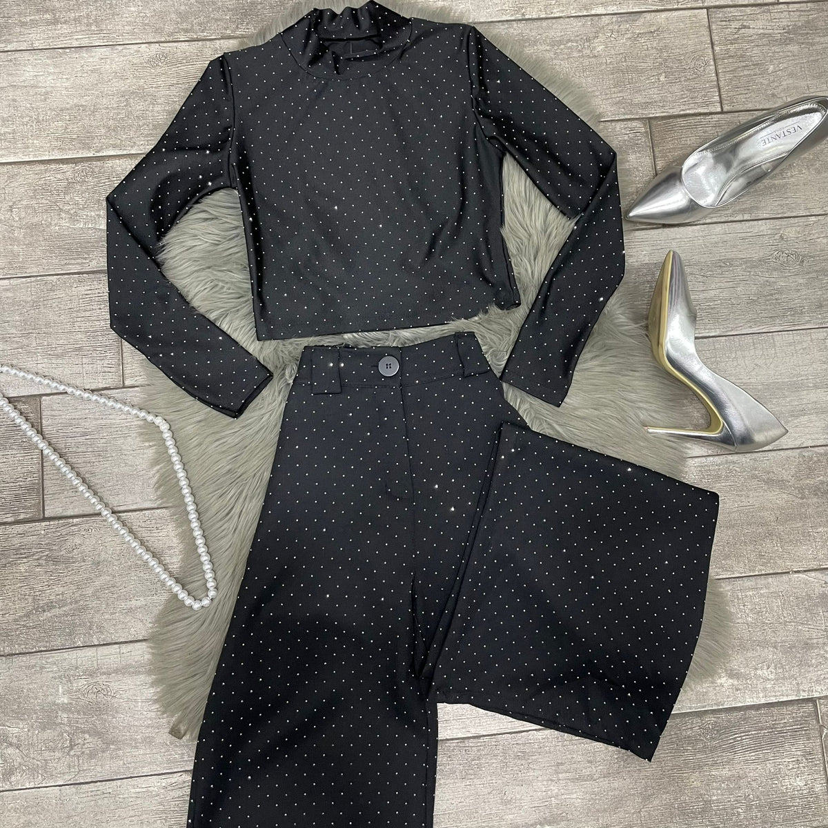 Maglia in raso a manica lunga con applicazioni di dettagli argento in rilievo Fabbricato in Italia.