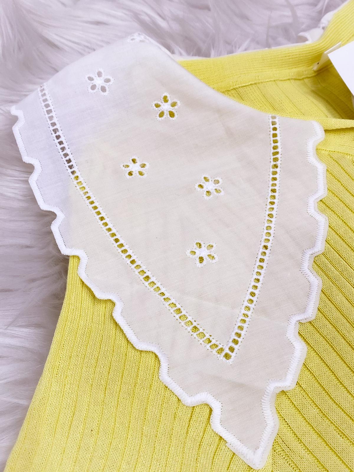 Maglia a costine modello corto, con bottoni centrali, colletto ricamato e mezza manica. Glamour, per un look bon ton, versatile e curato una vestibilità ottimale e alla moda. Fabbricato all'estero.