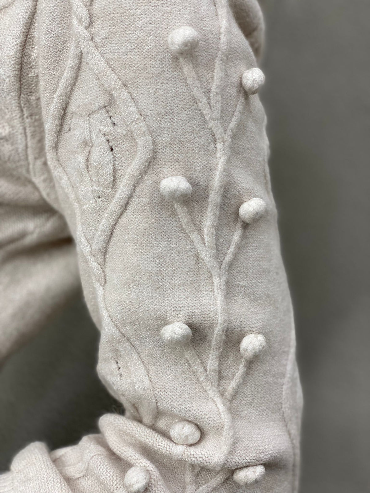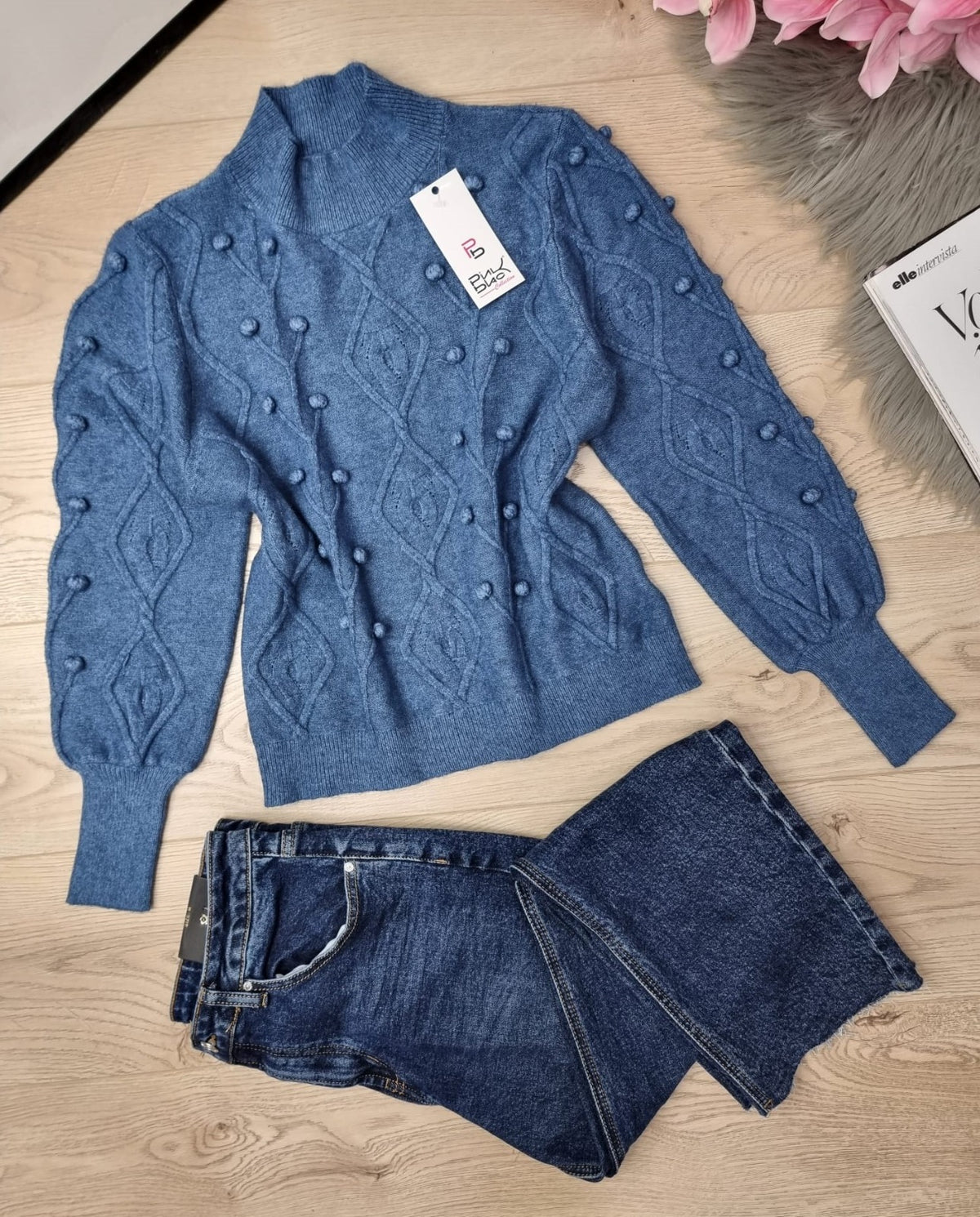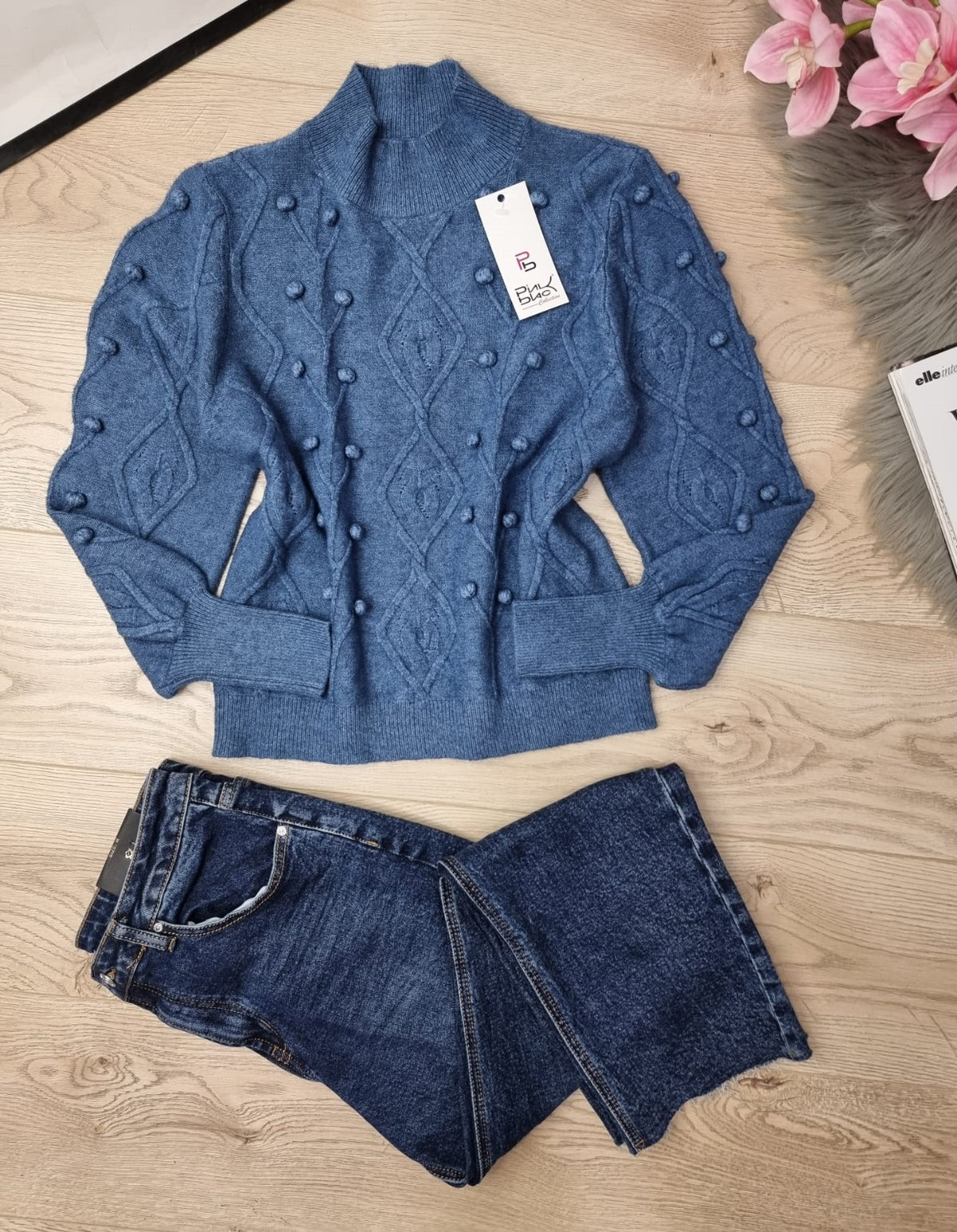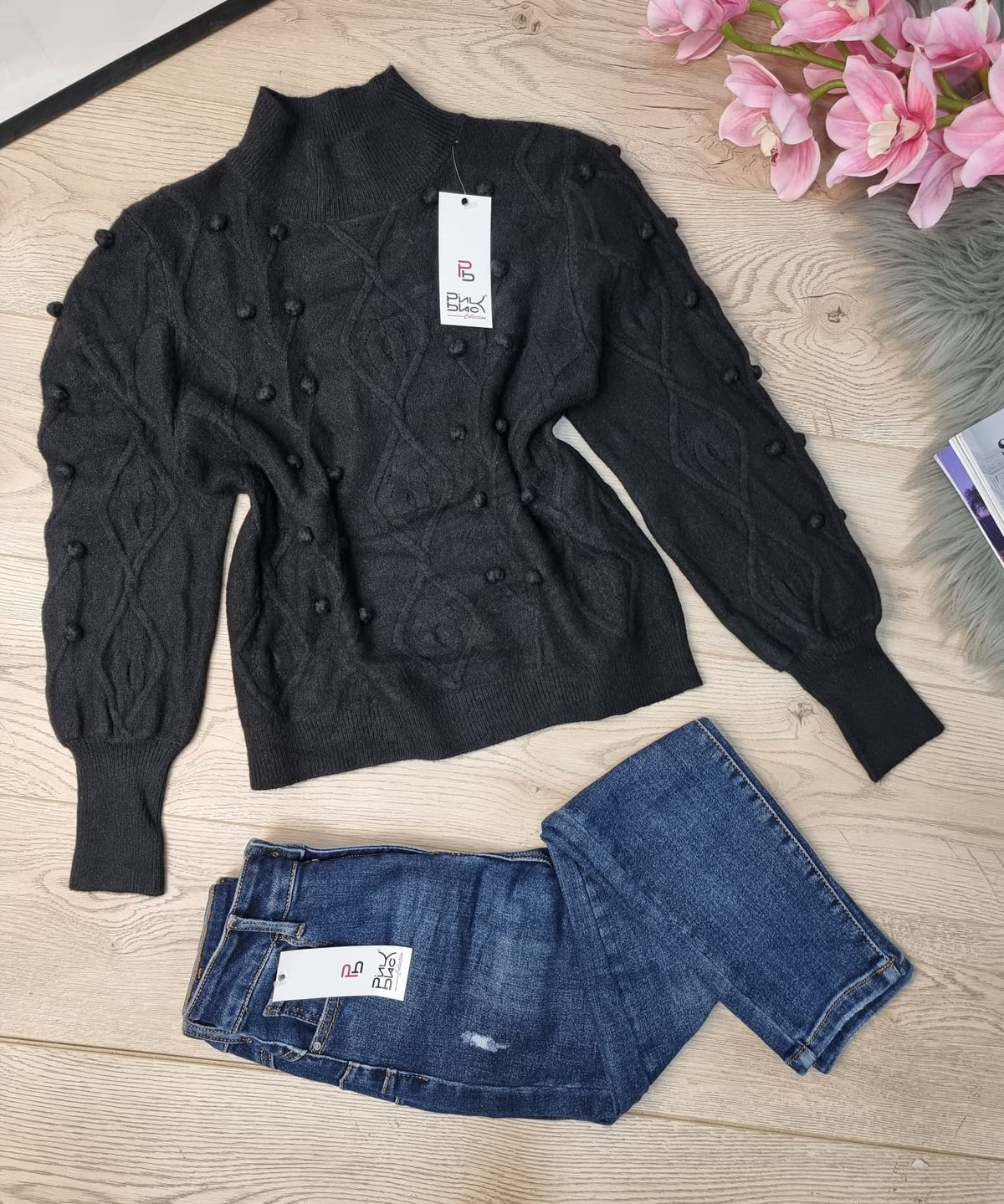 Maglioncino in viscosa, tinta unita. Taglio lento, fantasia geometrica con piccoli ponpon in rilievo ,collo alto e manica lunga. Glamour, enfatizza il mood casual con un tocco easy, per un look versatile e curato e una vestibilità ottimale e alla moda. Fabbricato all'estero.