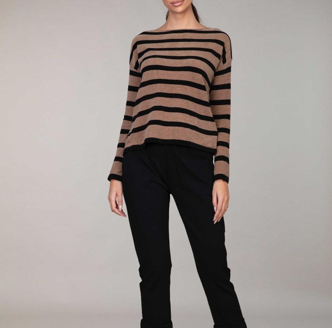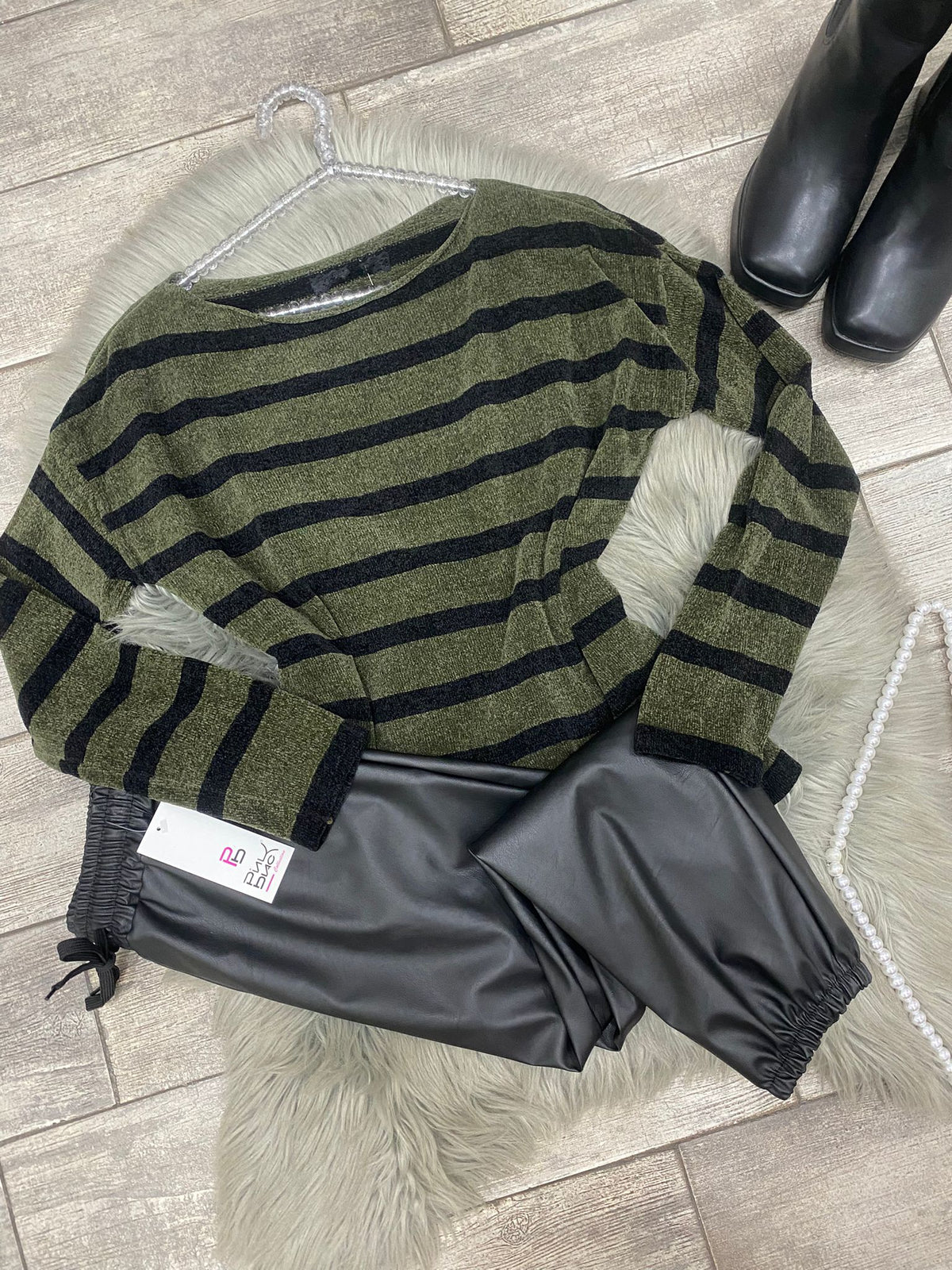 Maglioncino a girocollo con design a righe effetto velluto , scollatura a girocollo . Fabbricato all'estero.