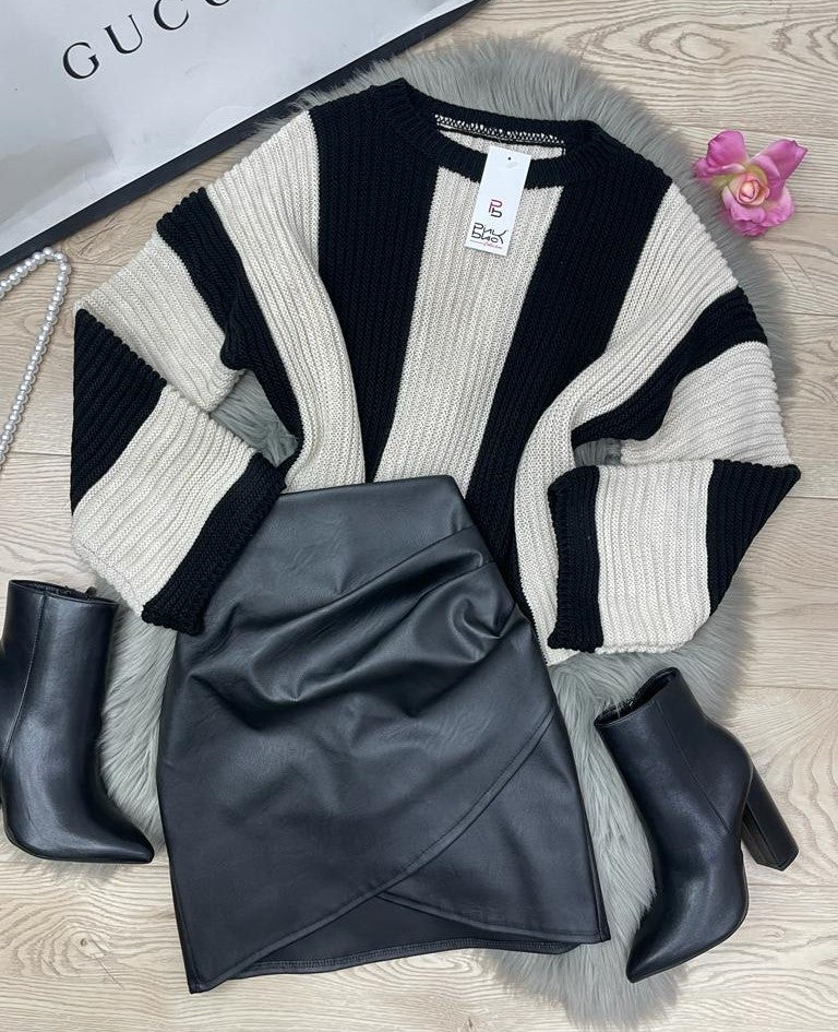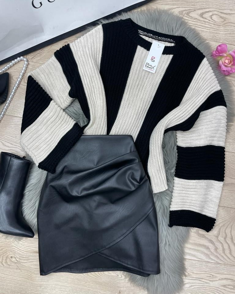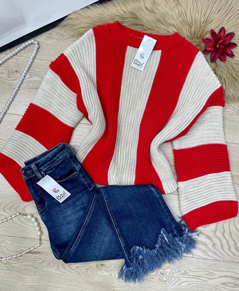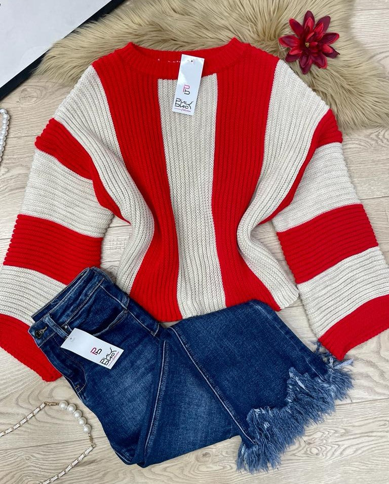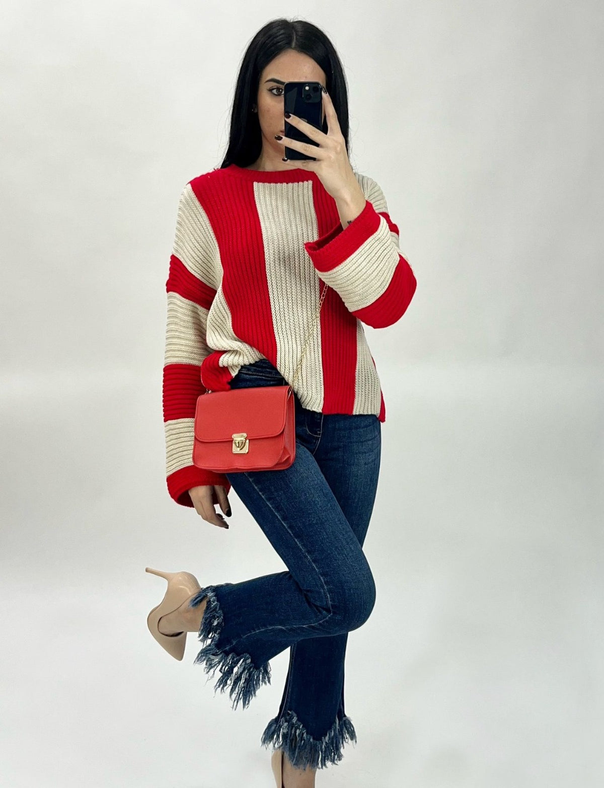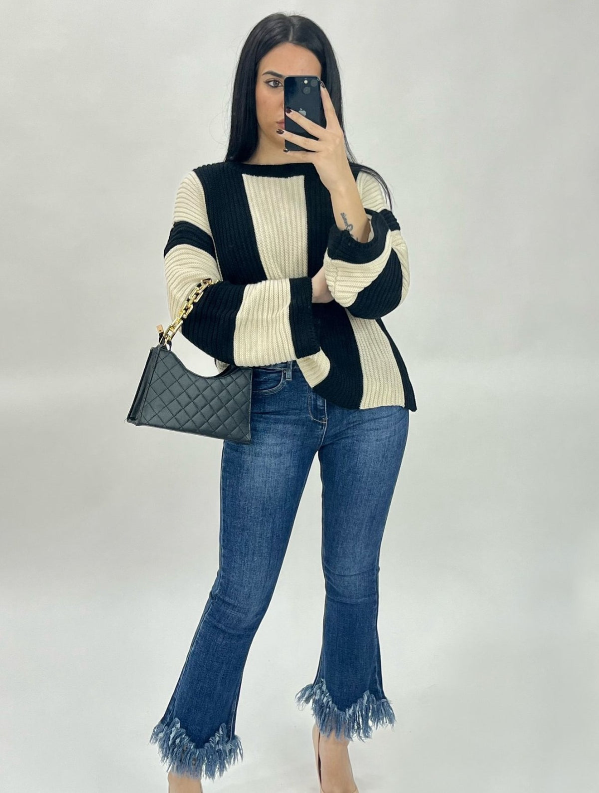 Maglione con design a righe e maniche a campana. Fabbricato in Italia.