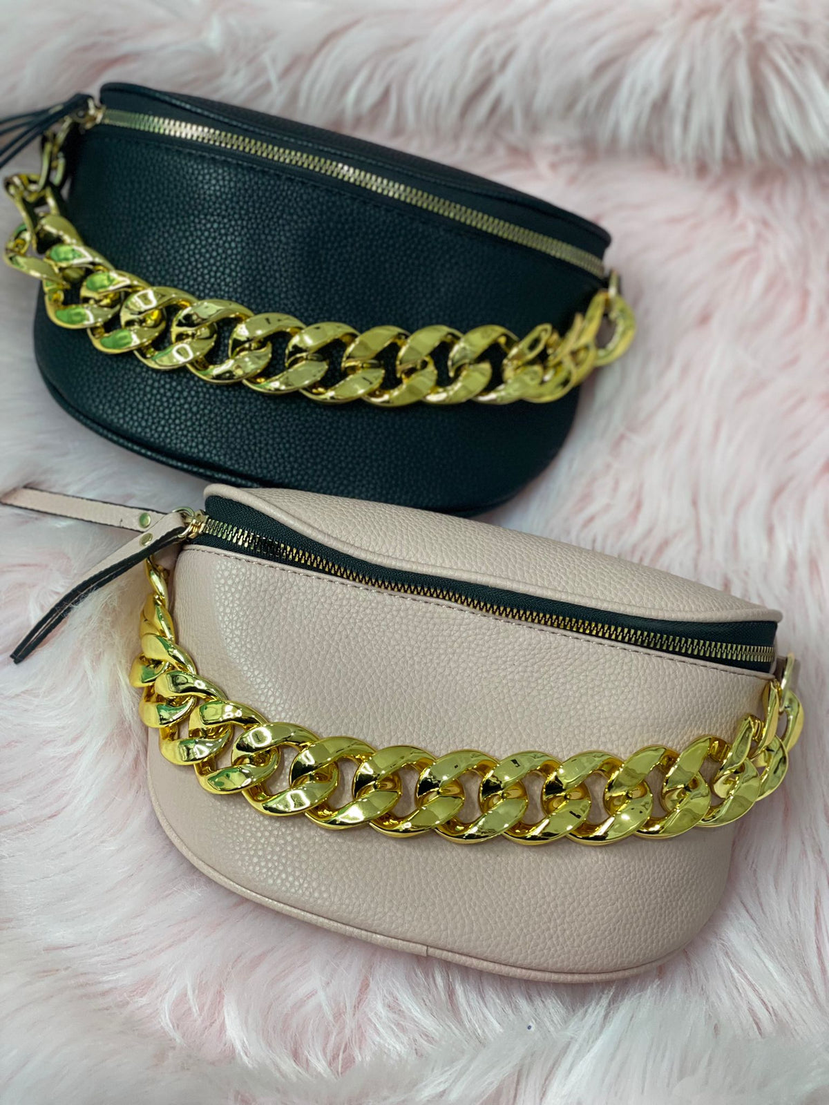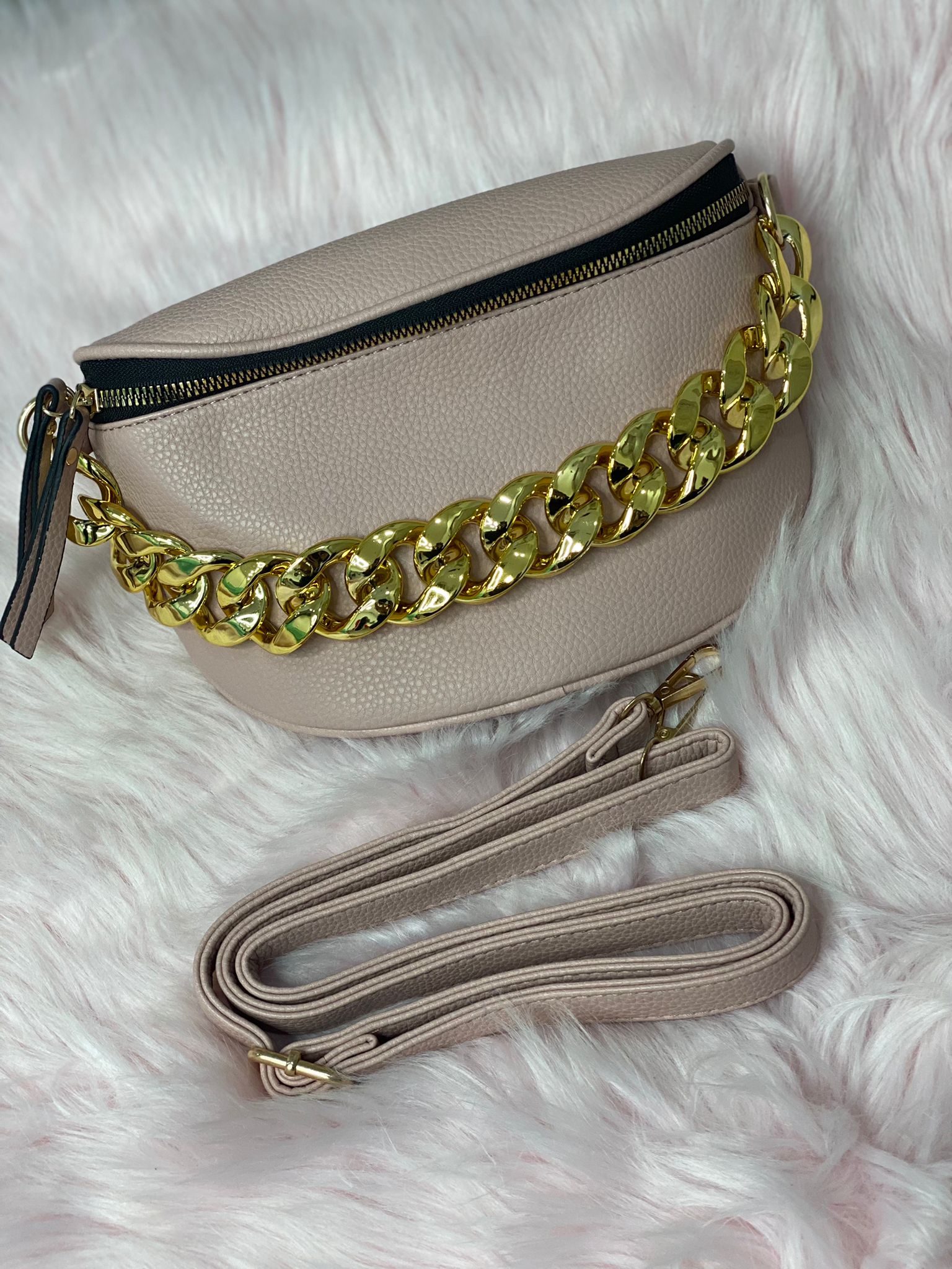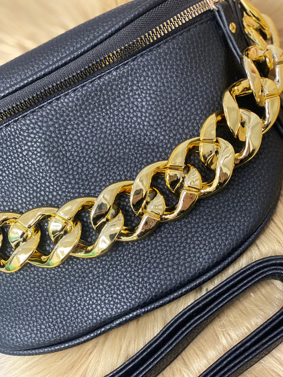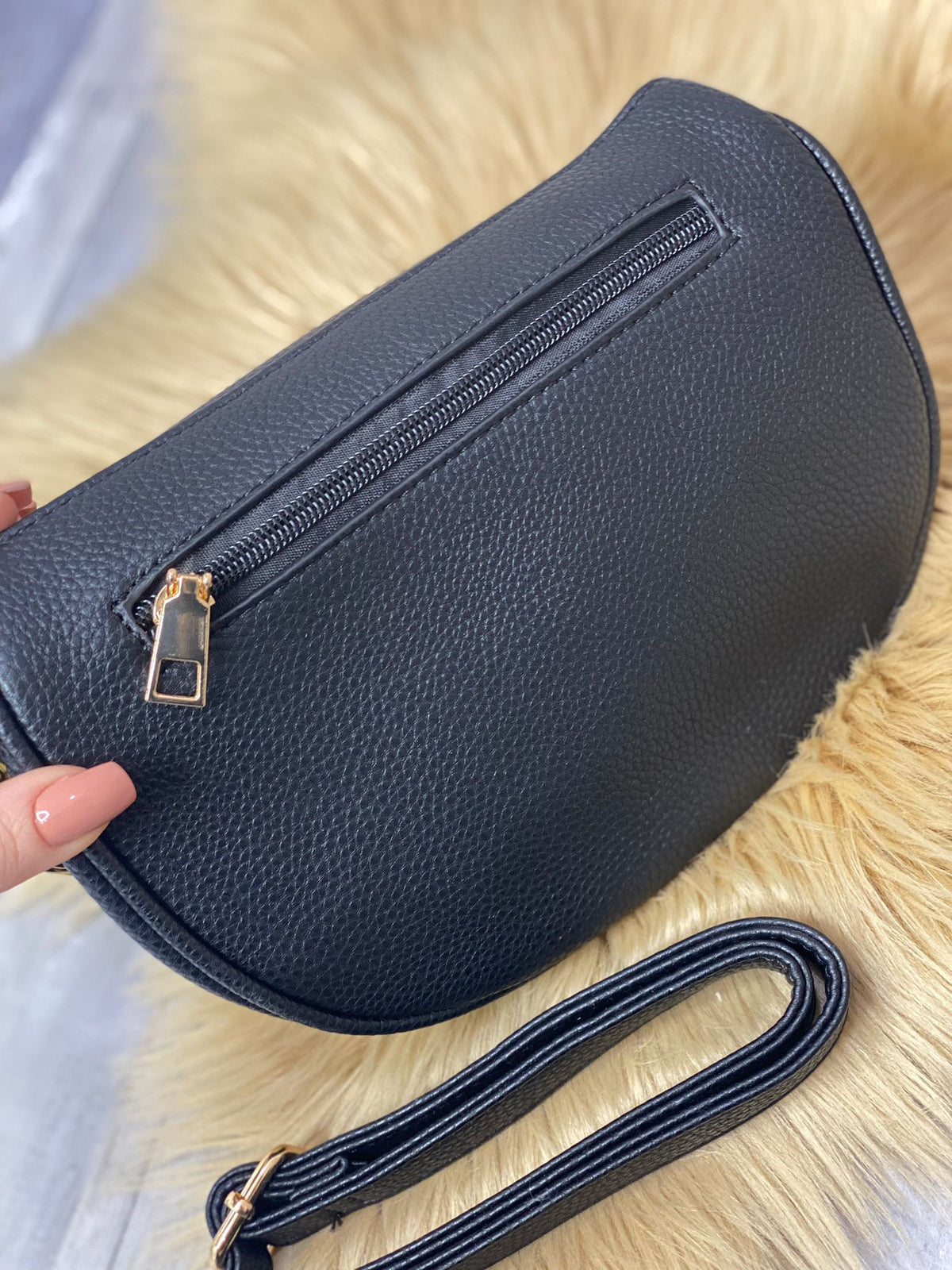 Marsupio in ecopelle con cerniera e tracolla inclusa.