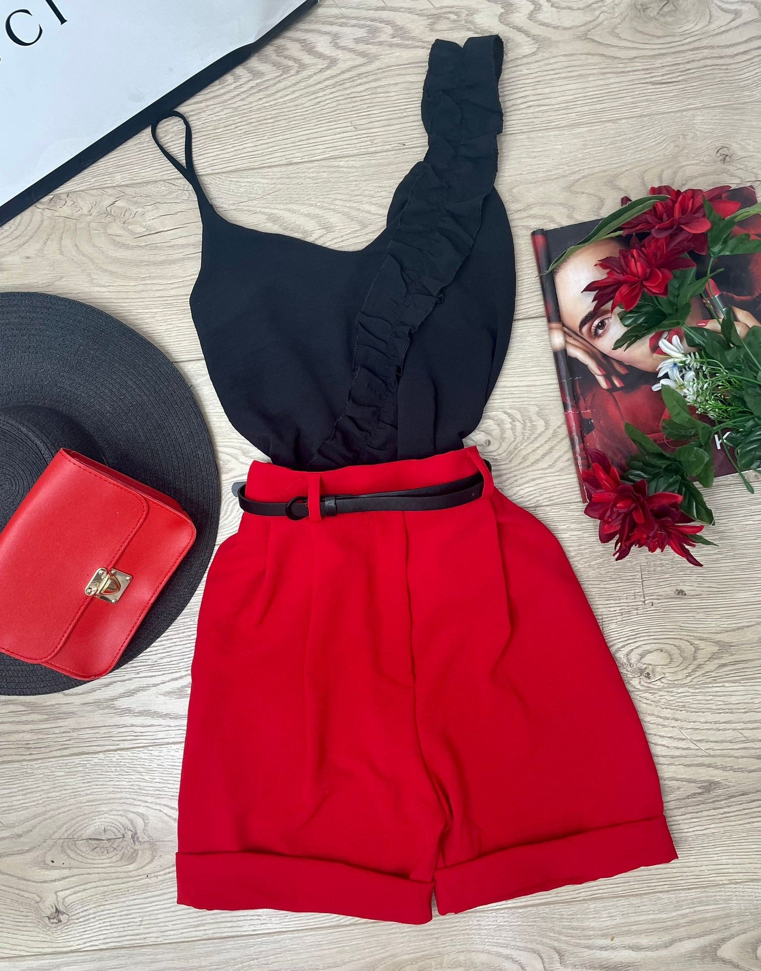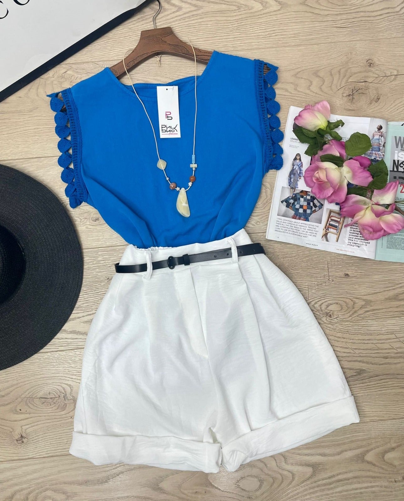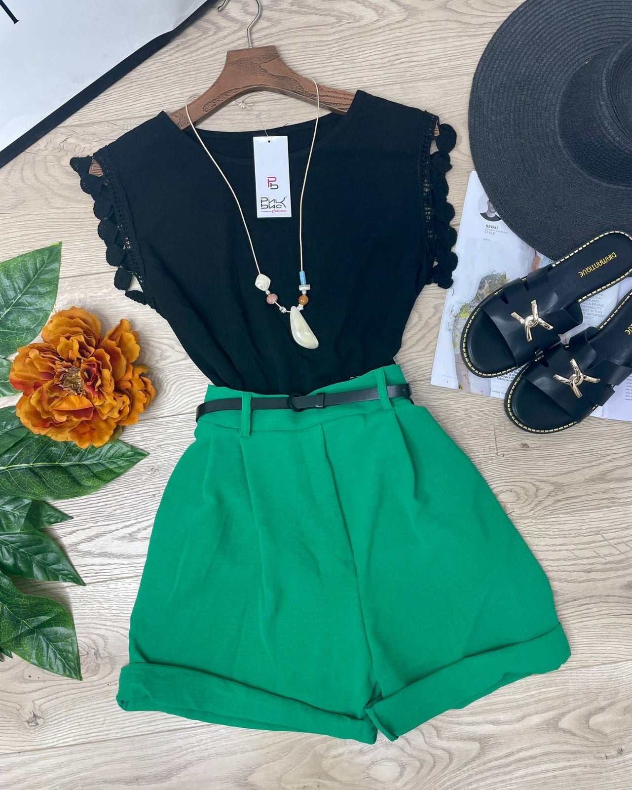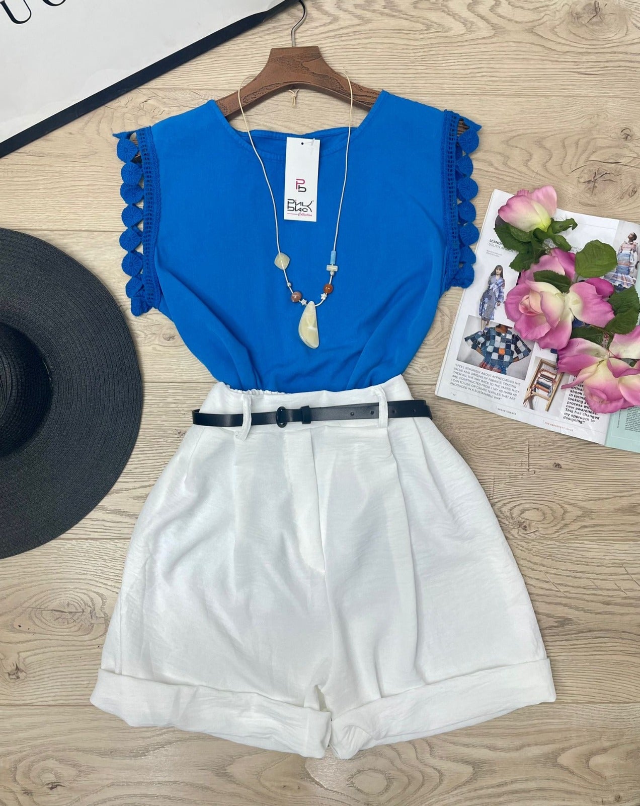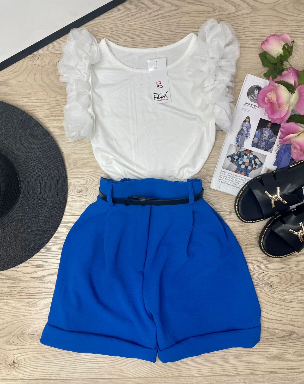 Pantaloncino con fascia elastica in vita, pinces e cinturino incluso. Fabbricato in Italia.