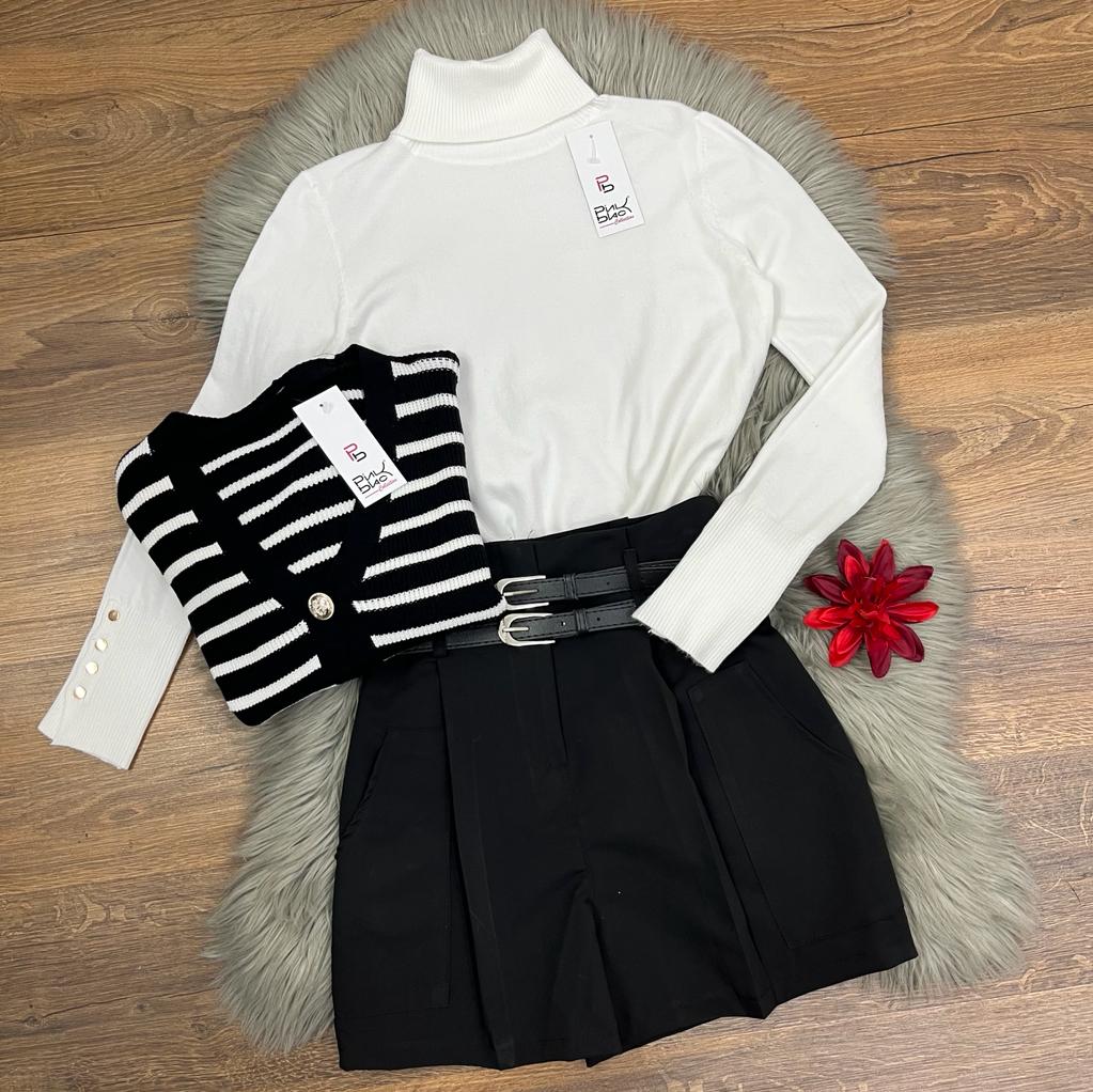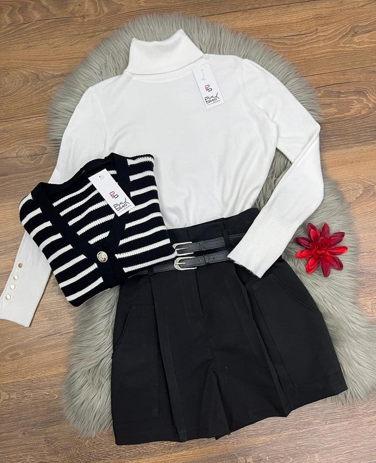 Short in tessuto strutturato con tasconi e doppia cintura. La vestibilità delle taglie risulta regolare. Fabbricato in Italia.