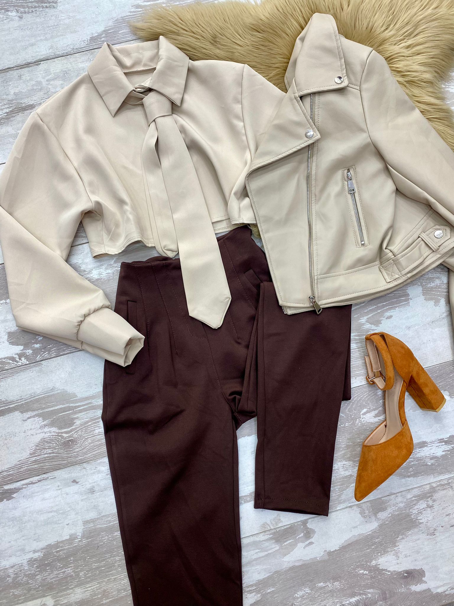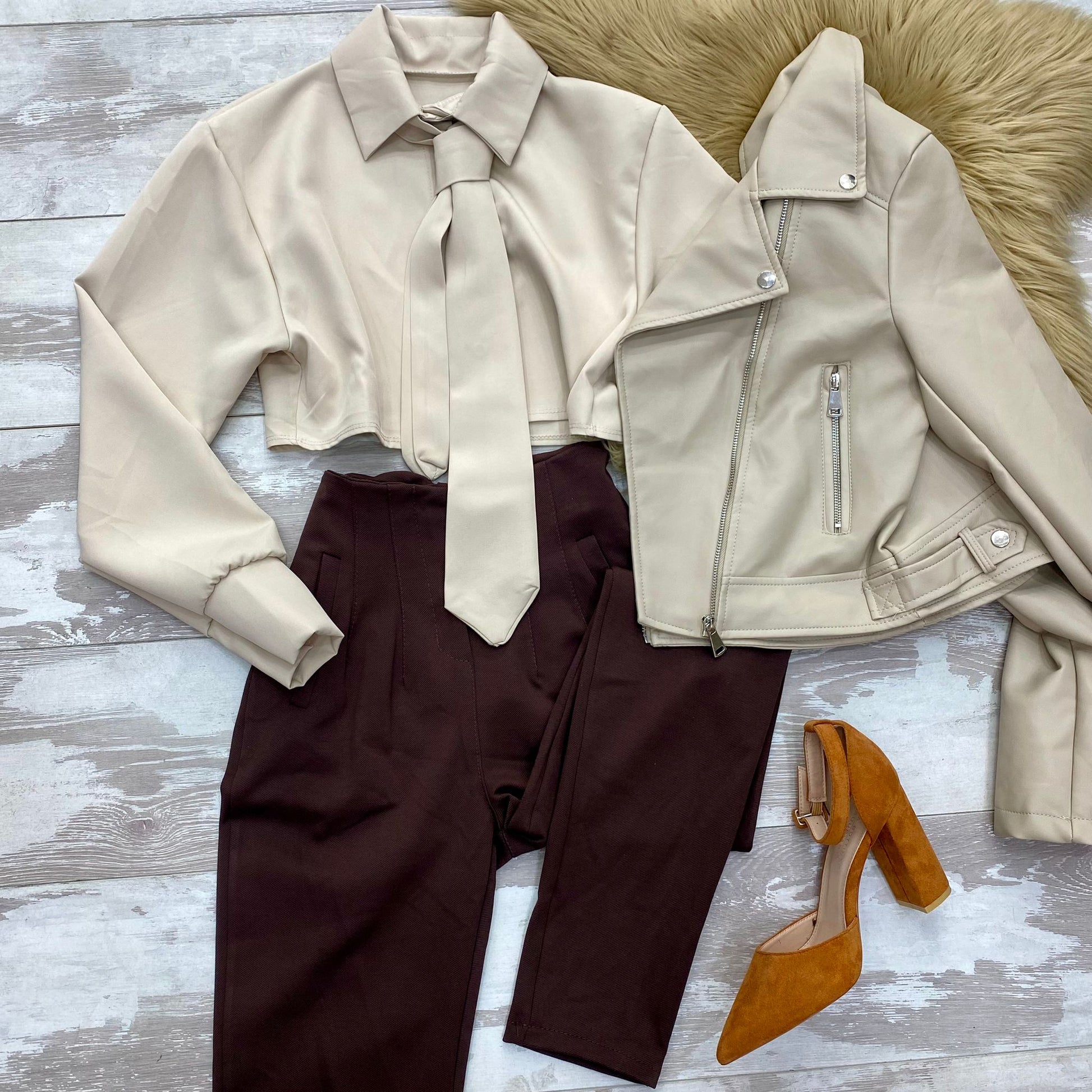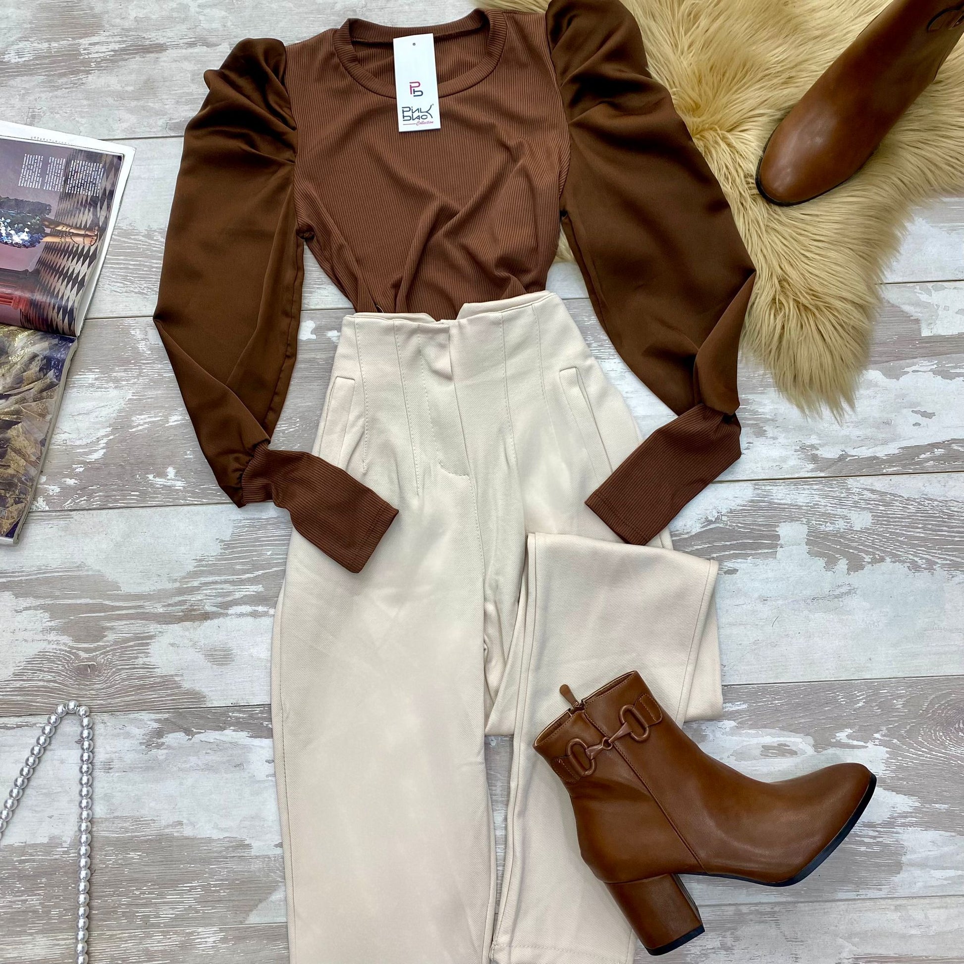 Pantalone modello classico a vita alta con tasche estetiche e chiusura con cerniera.