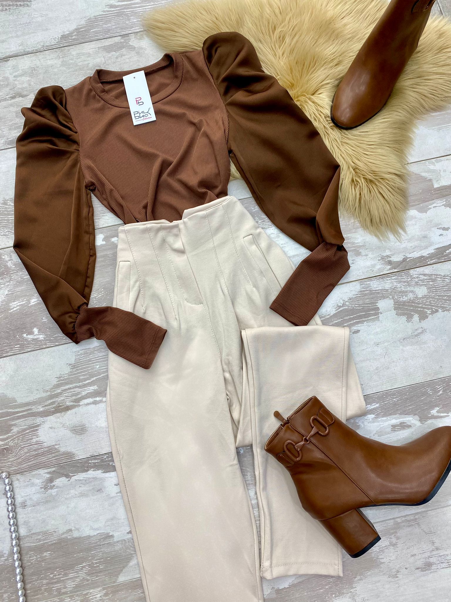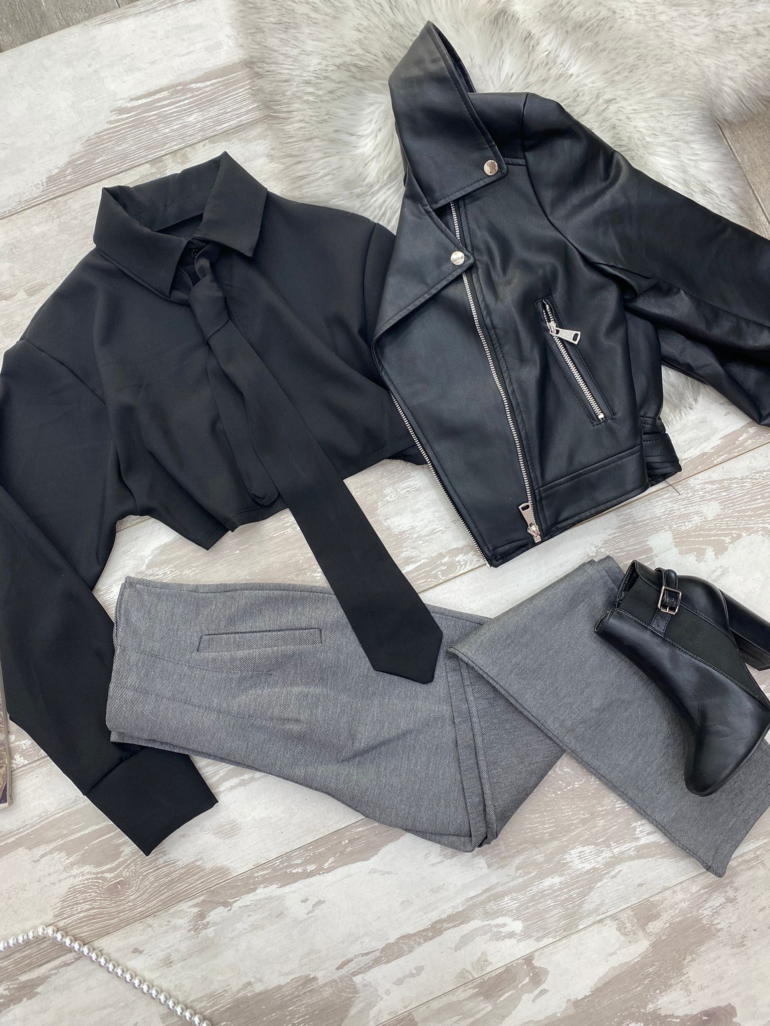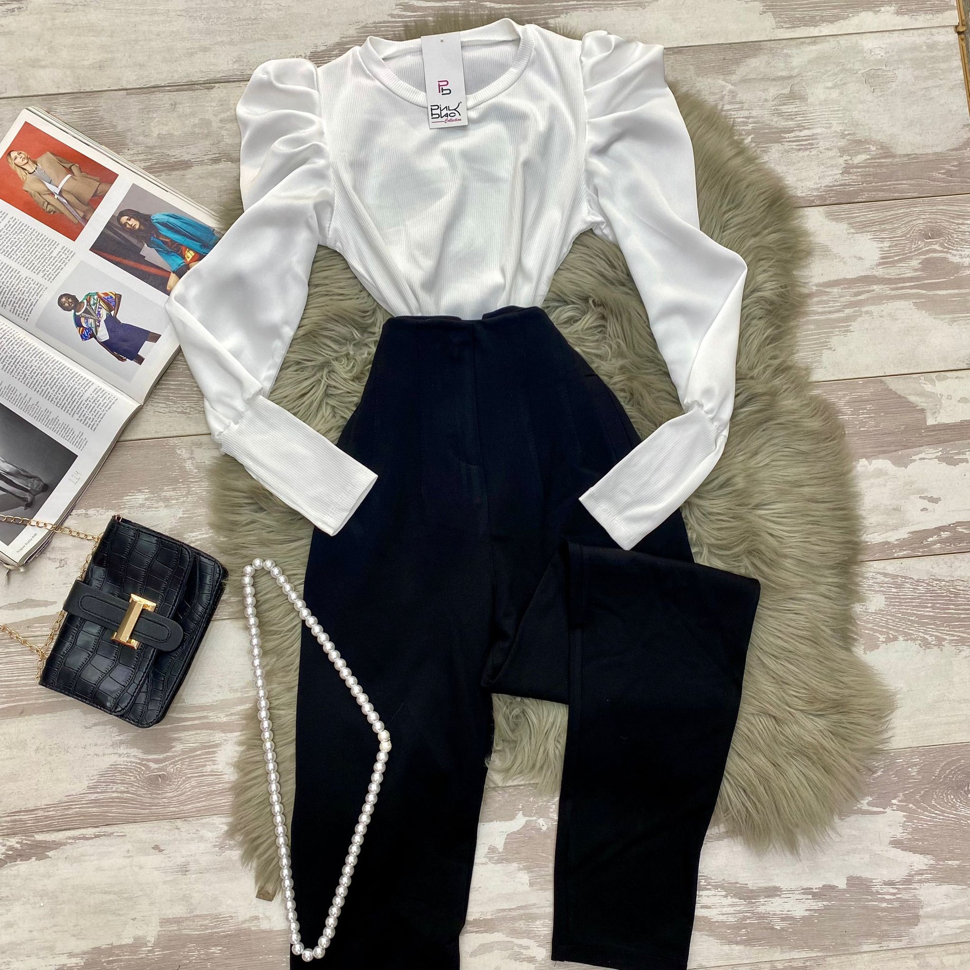 Pantalone modello classico a vita alta con tasche estetiche e chiusura con cerniera.