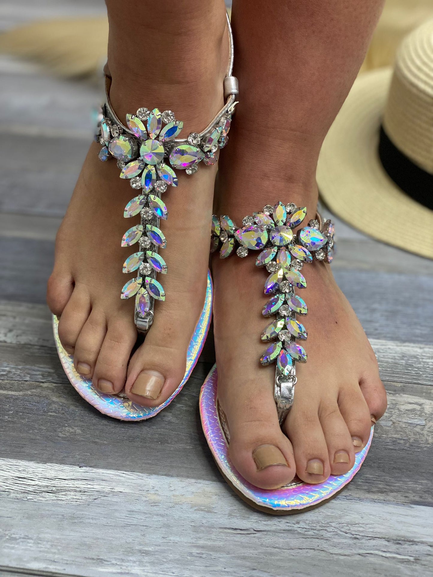 Sandalo infradito con applicazione di pietre.
