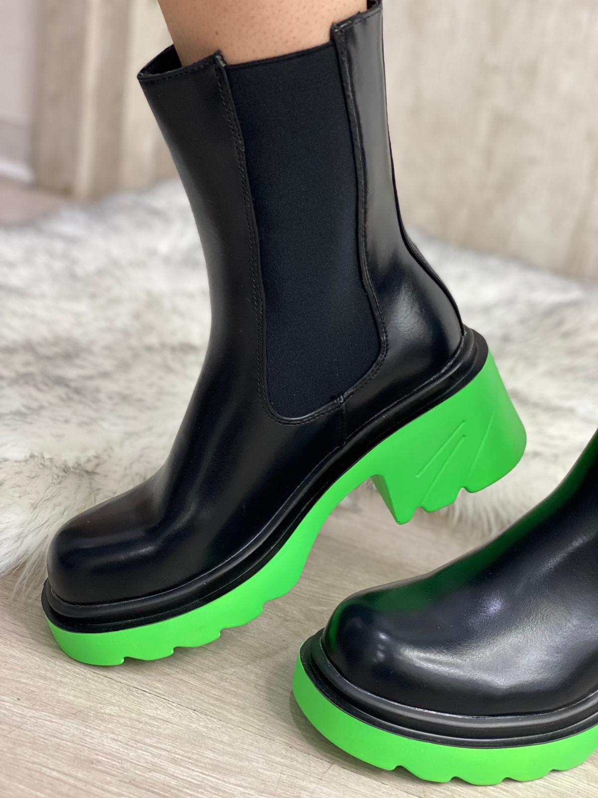 Stivaletto in ecopelle con con inserti elasticizzati e tacco comodo.