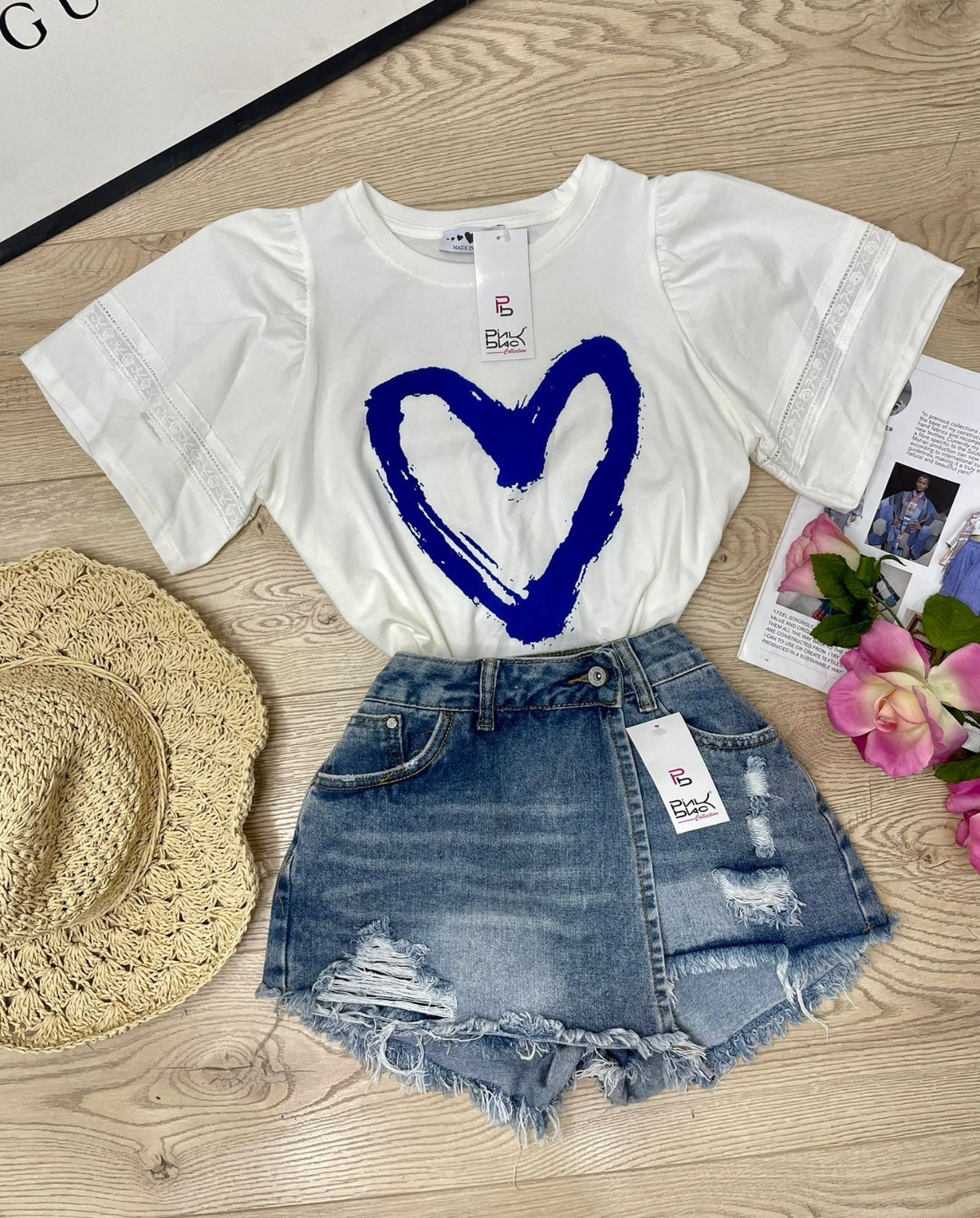 T-shirt con stampa cuore e ricamo nella manica. Fabbricato all'estero.