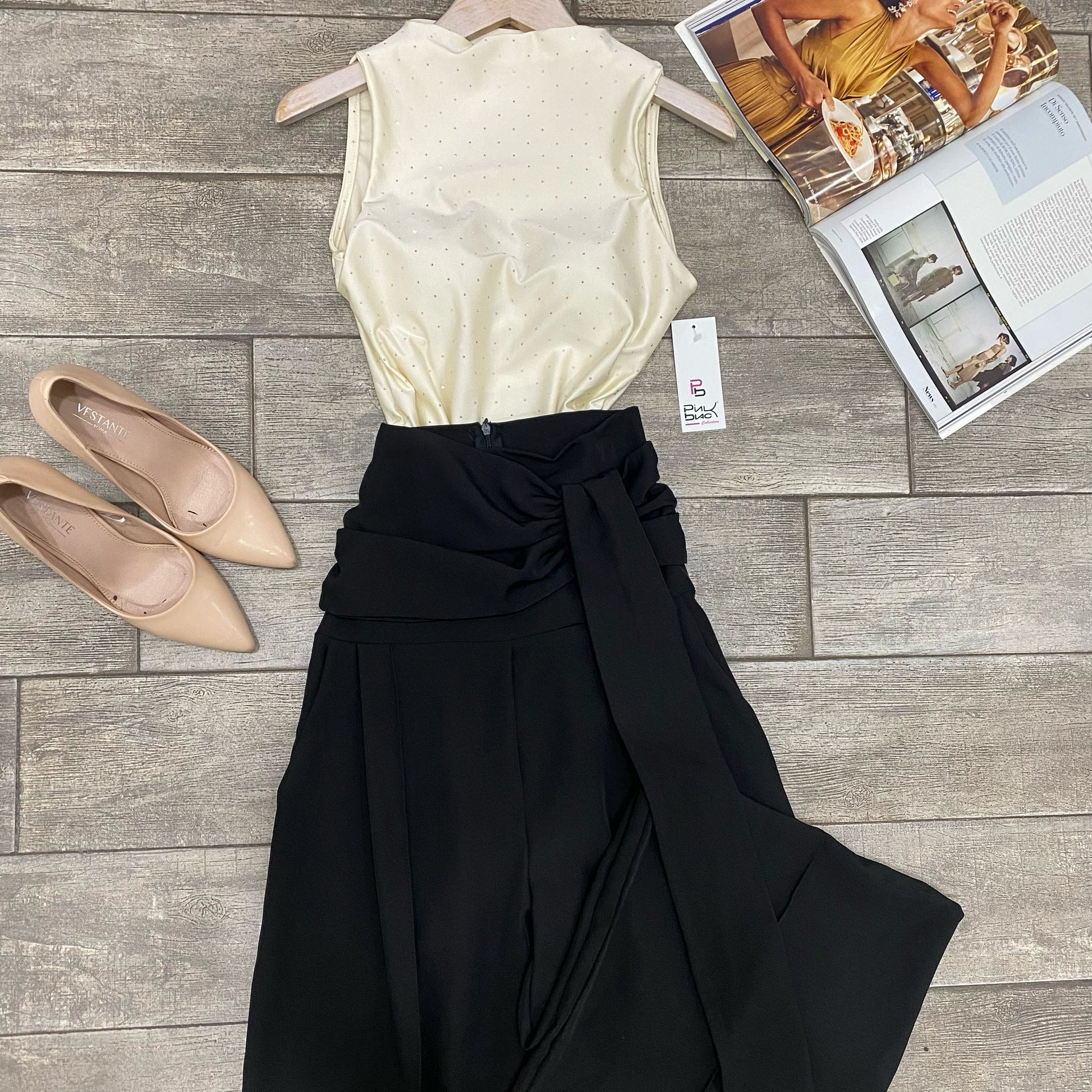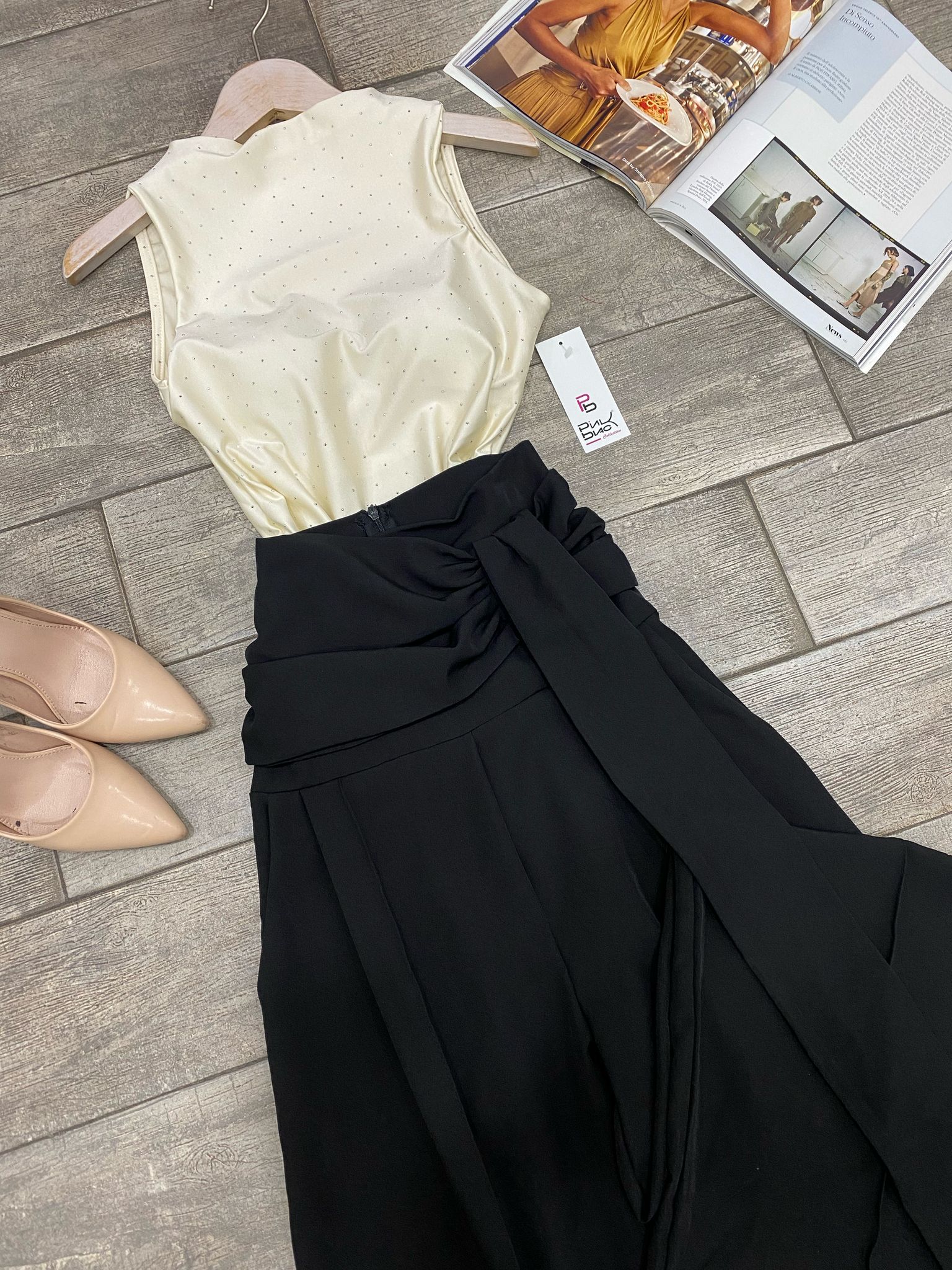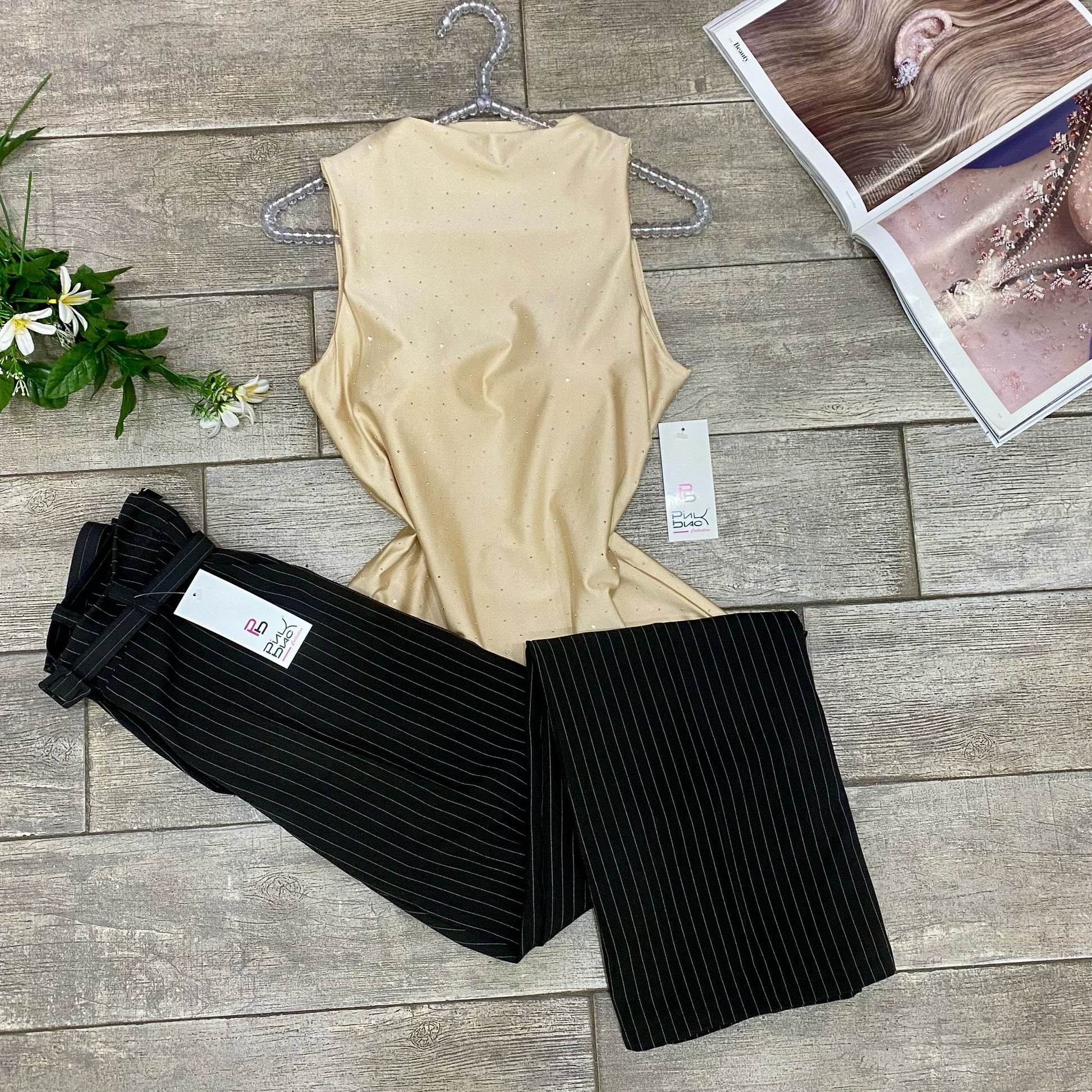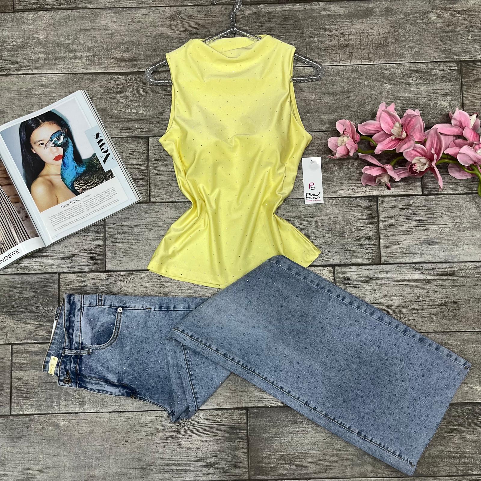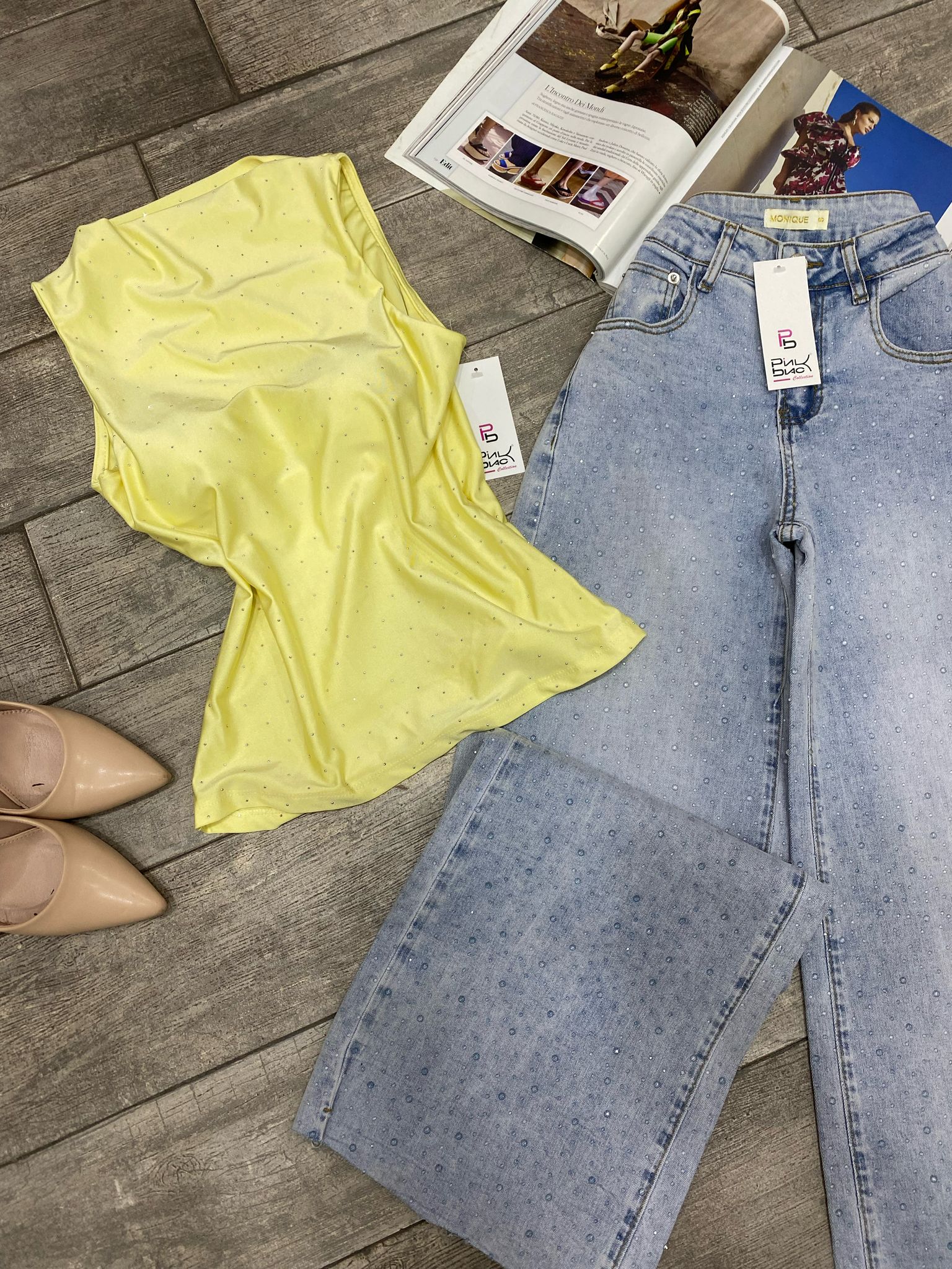 Top effetto lycra con brillantini in rilievo e coppe preformate