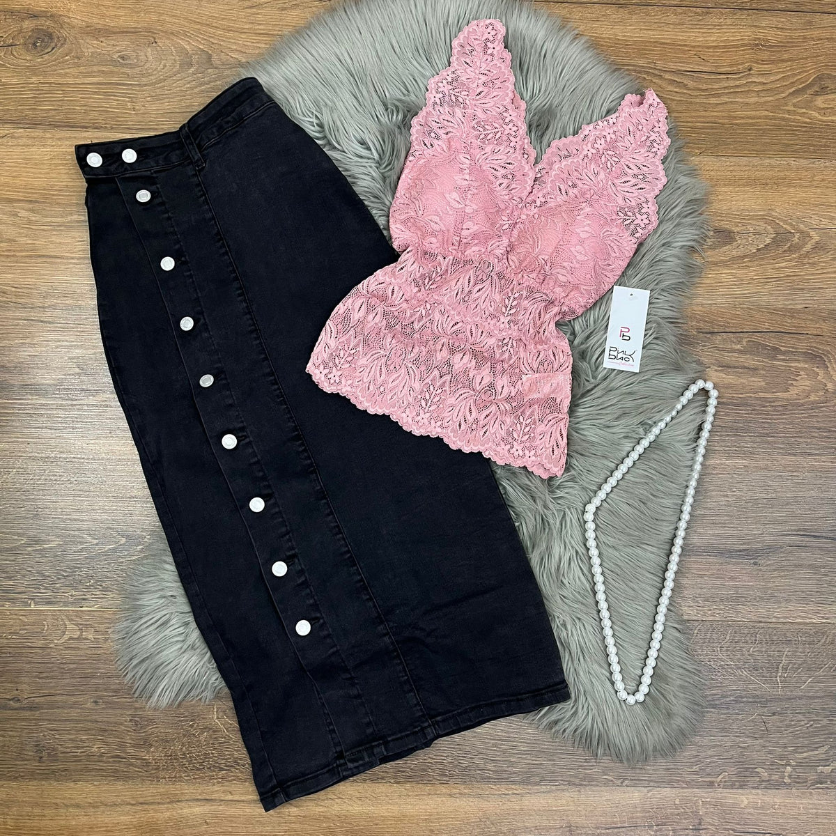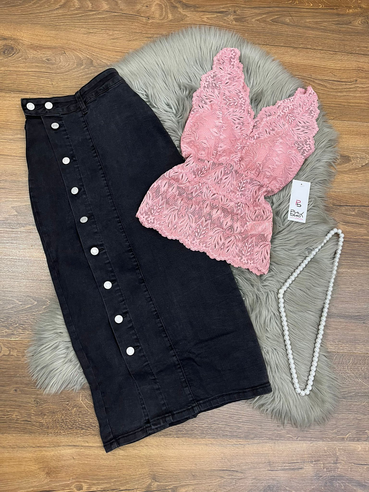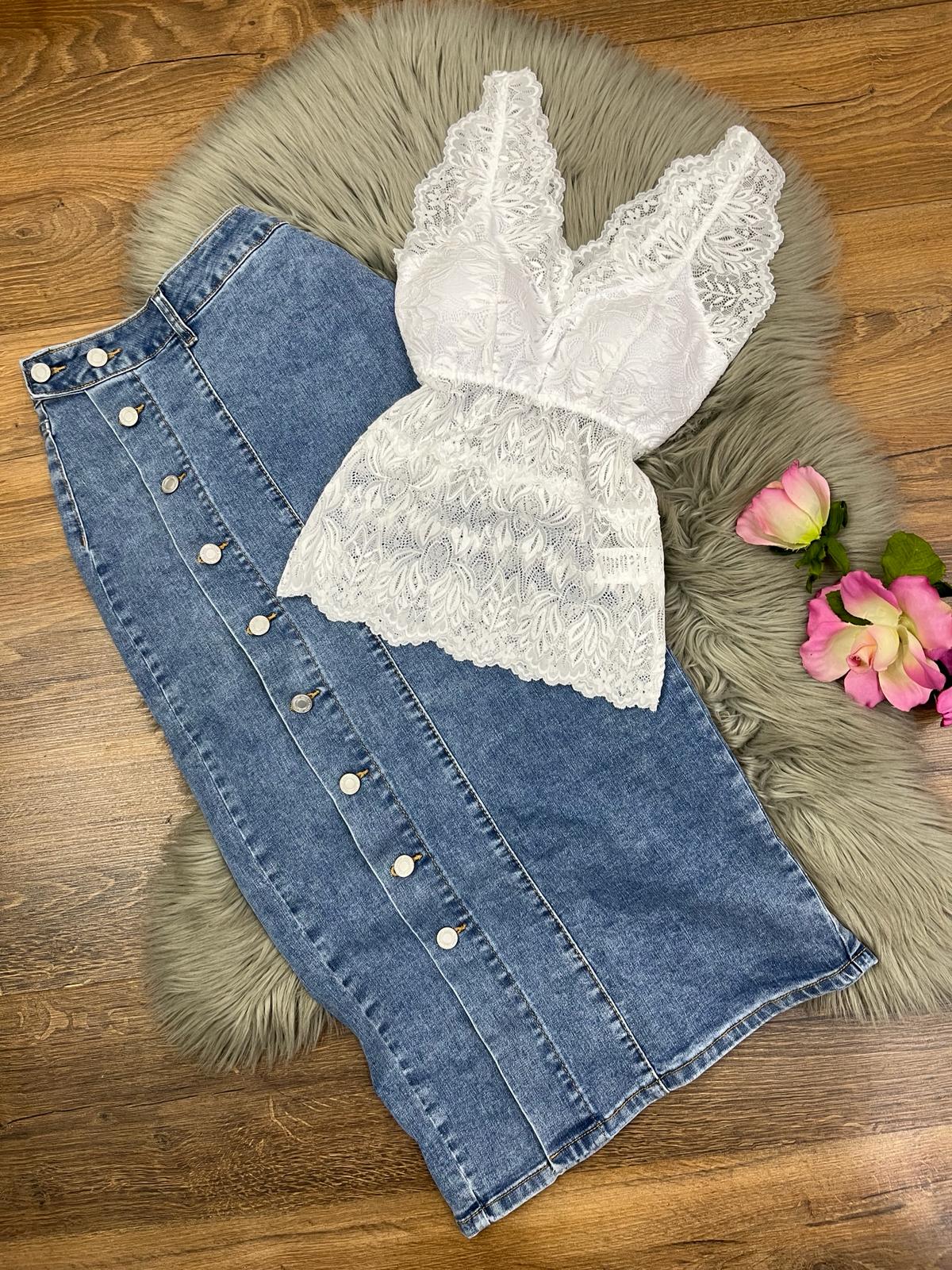 Top in pizzo con coppe preformate. Fabbricato in all'estero.