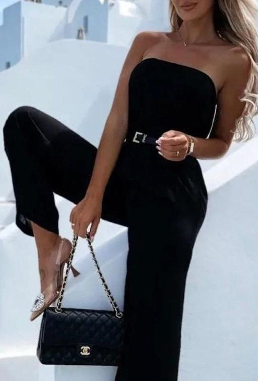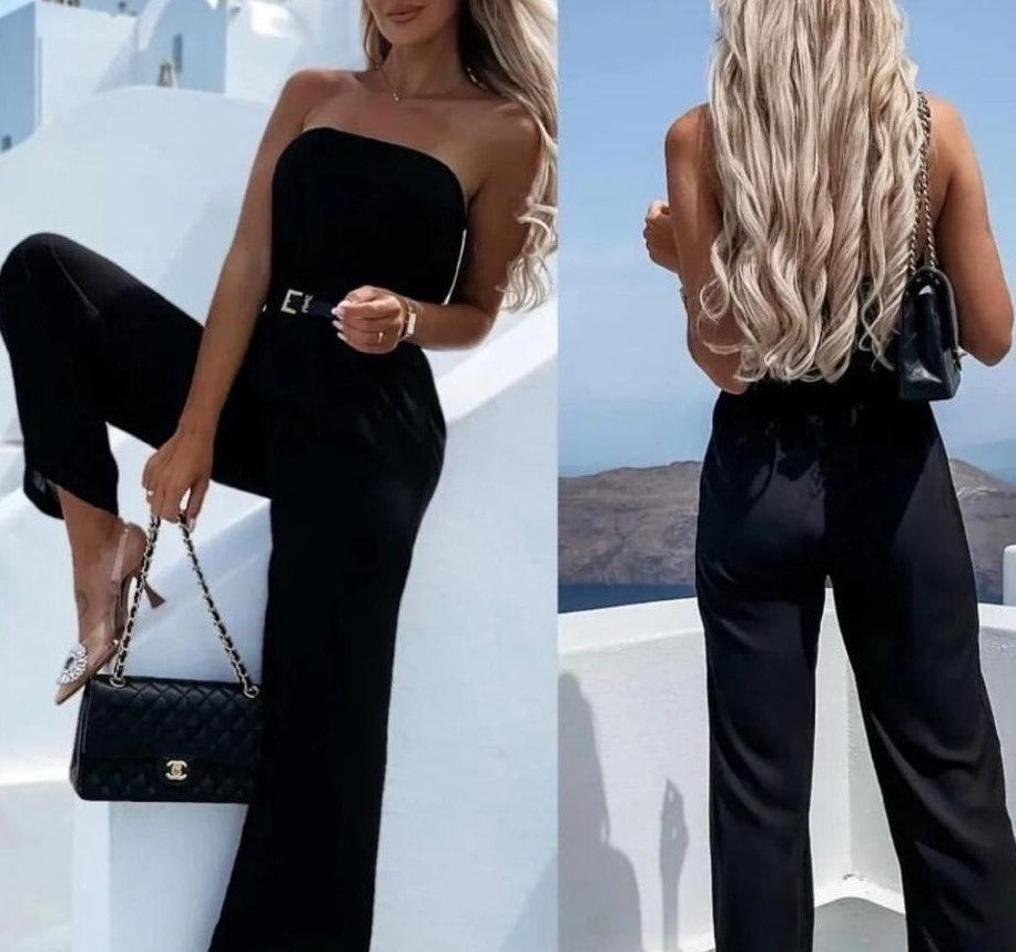 Tuta in leggero tessuto strutturato, coppe preformate, elastico in vita e pantalone morbido. Fabbricato in Italia.