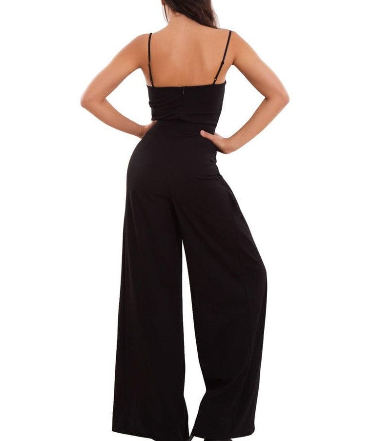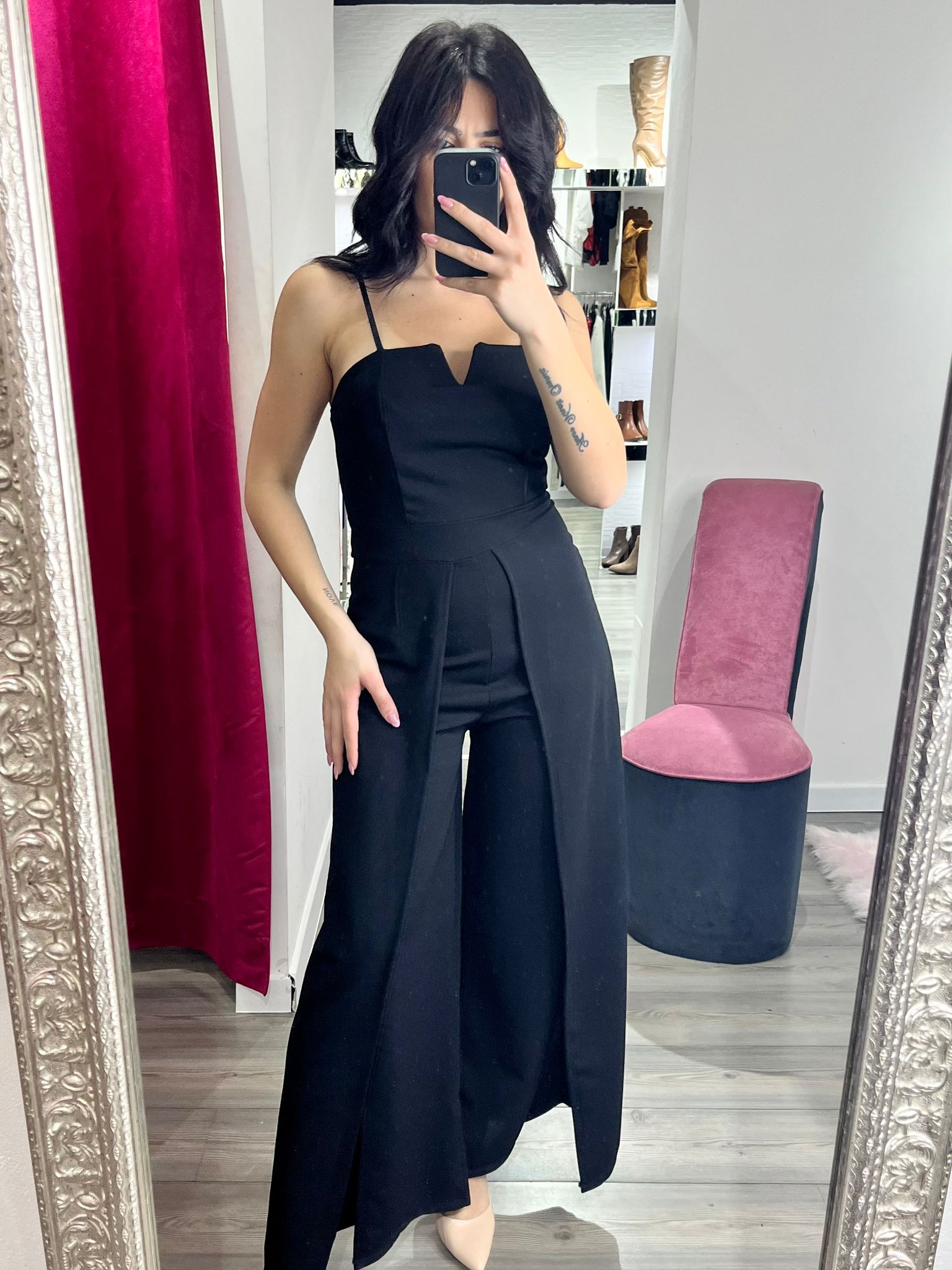 Tuta in tessuto scuba crepe con coppe preformate, pantalone morbido e chiusura con cerniera. Fabbricato in Italia.