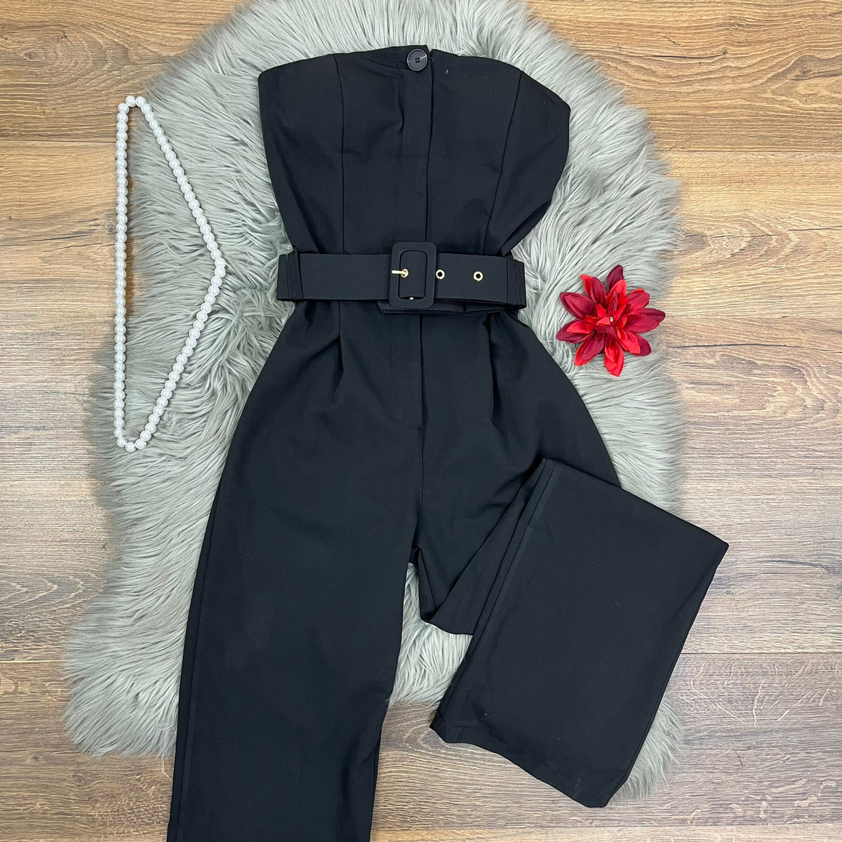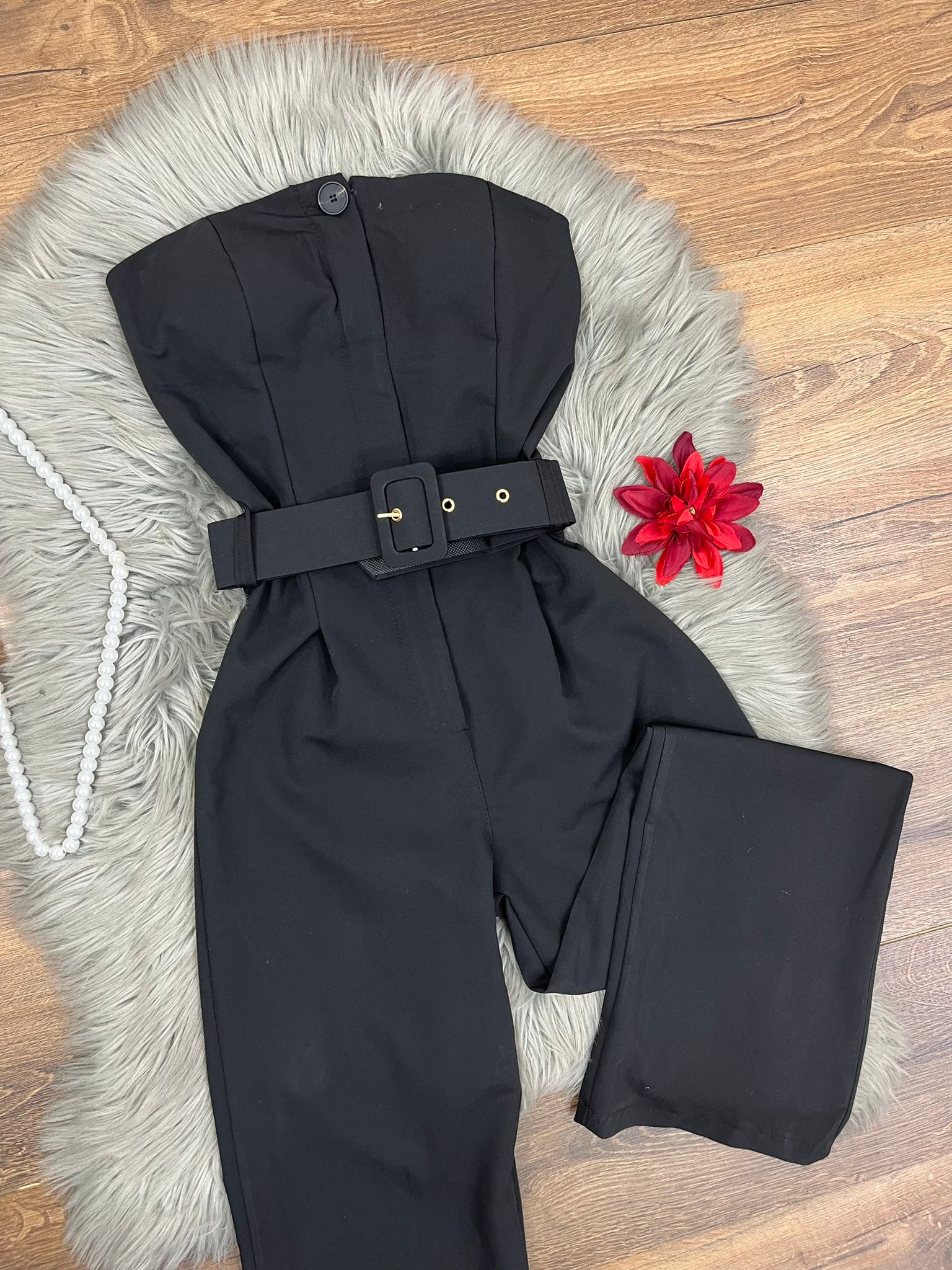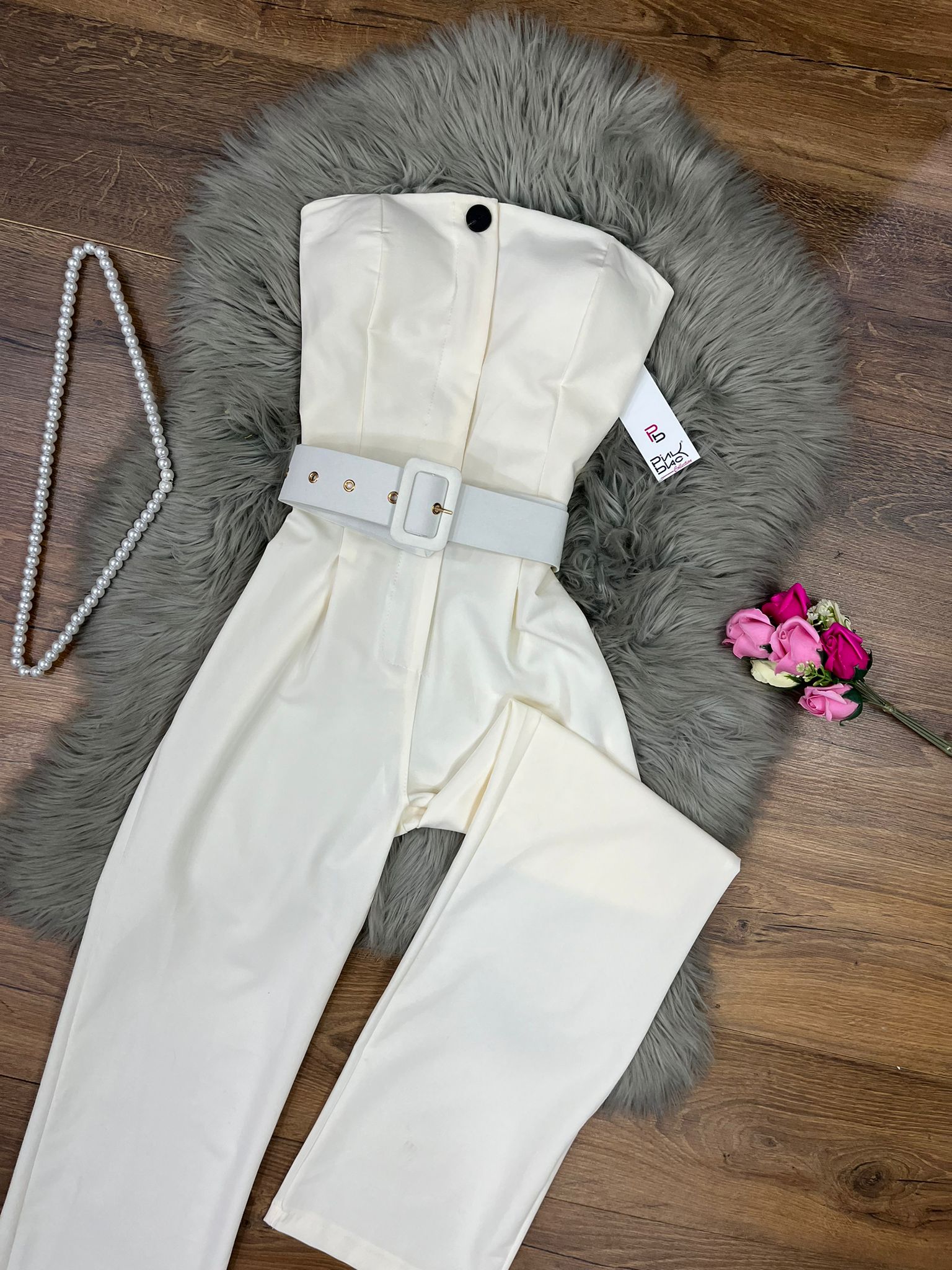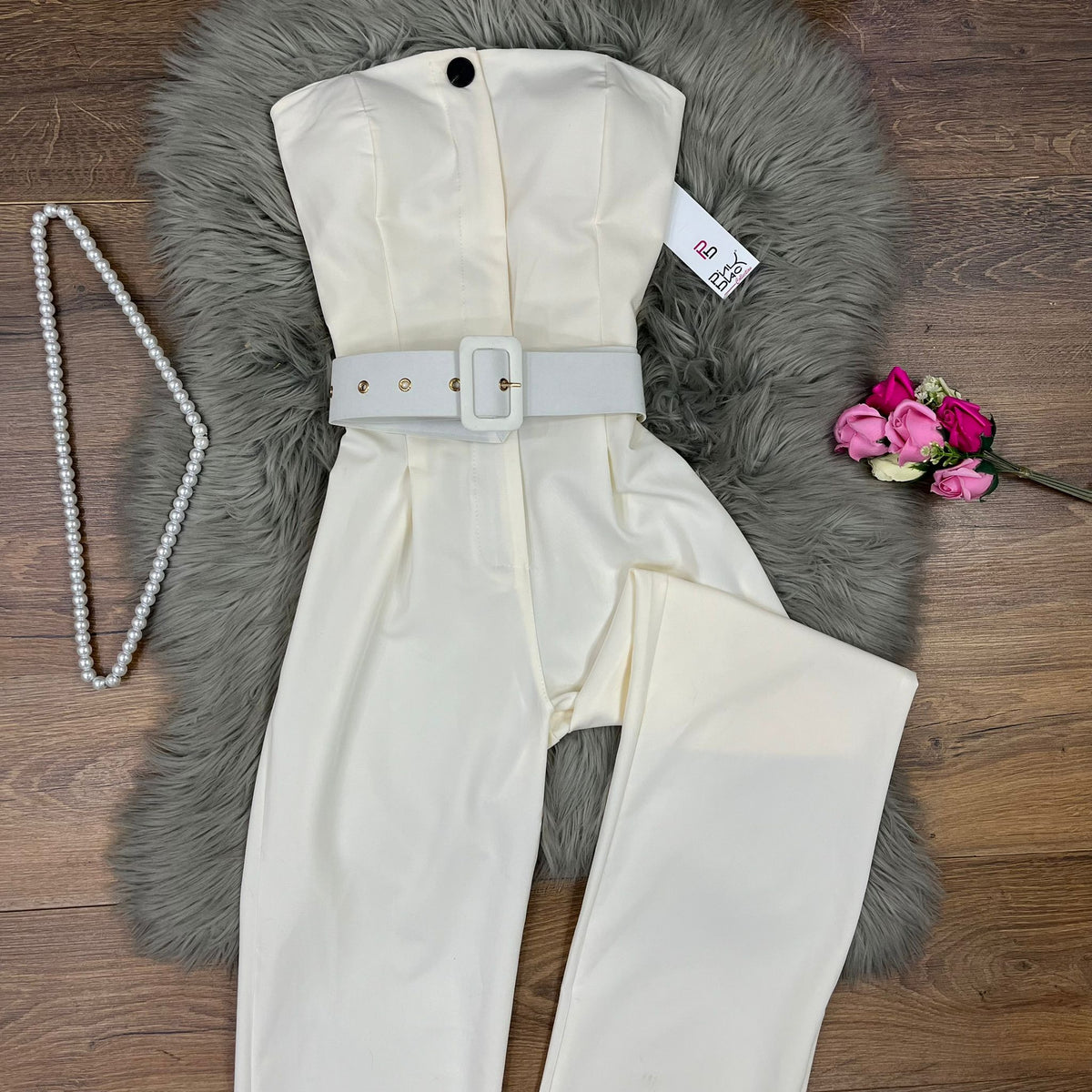 Tuta in tessuto strutturato con coppe preformate, elastico in vita, pantalone morbido e cintura inclusa. Fabbricato in Italia.
