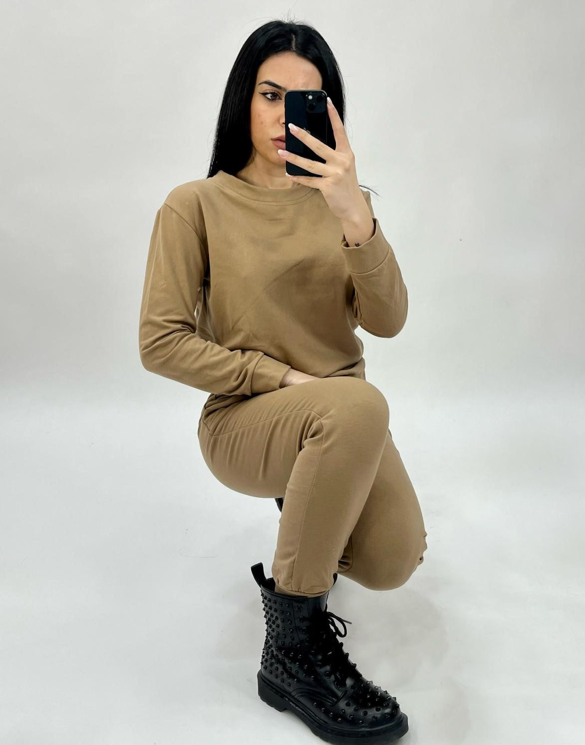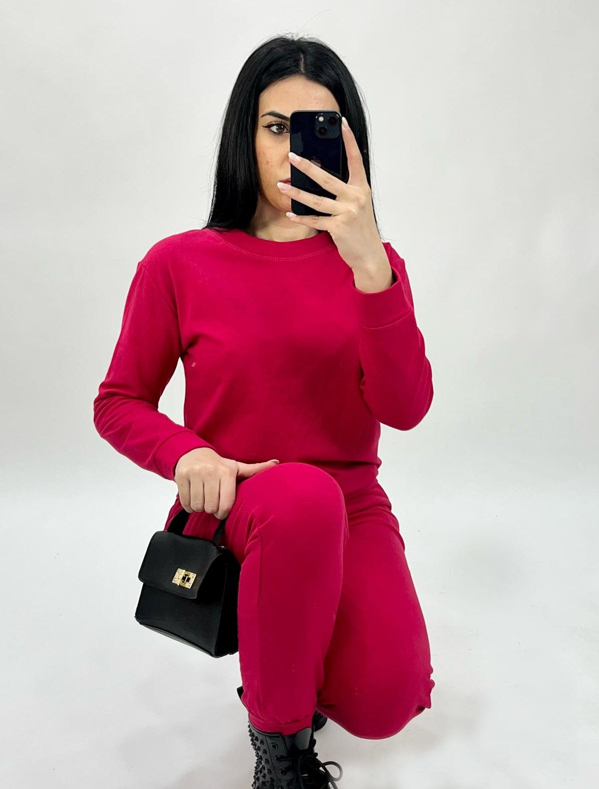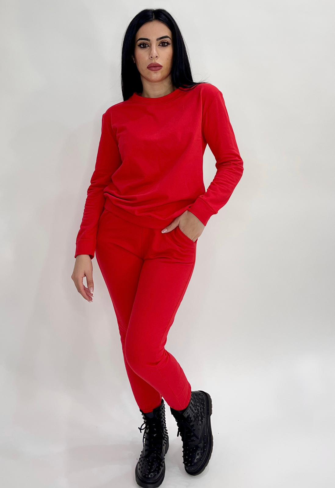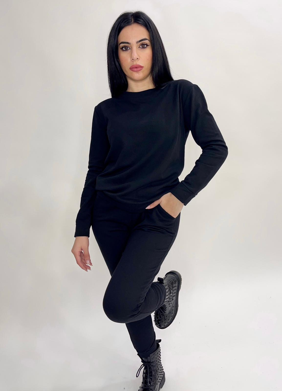 Completo tuta felpa - pantalone con elastico in vita e tasche. Fabbricato in Italia.