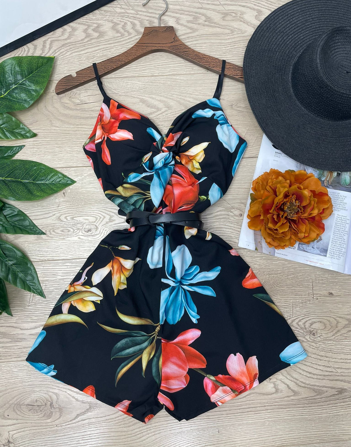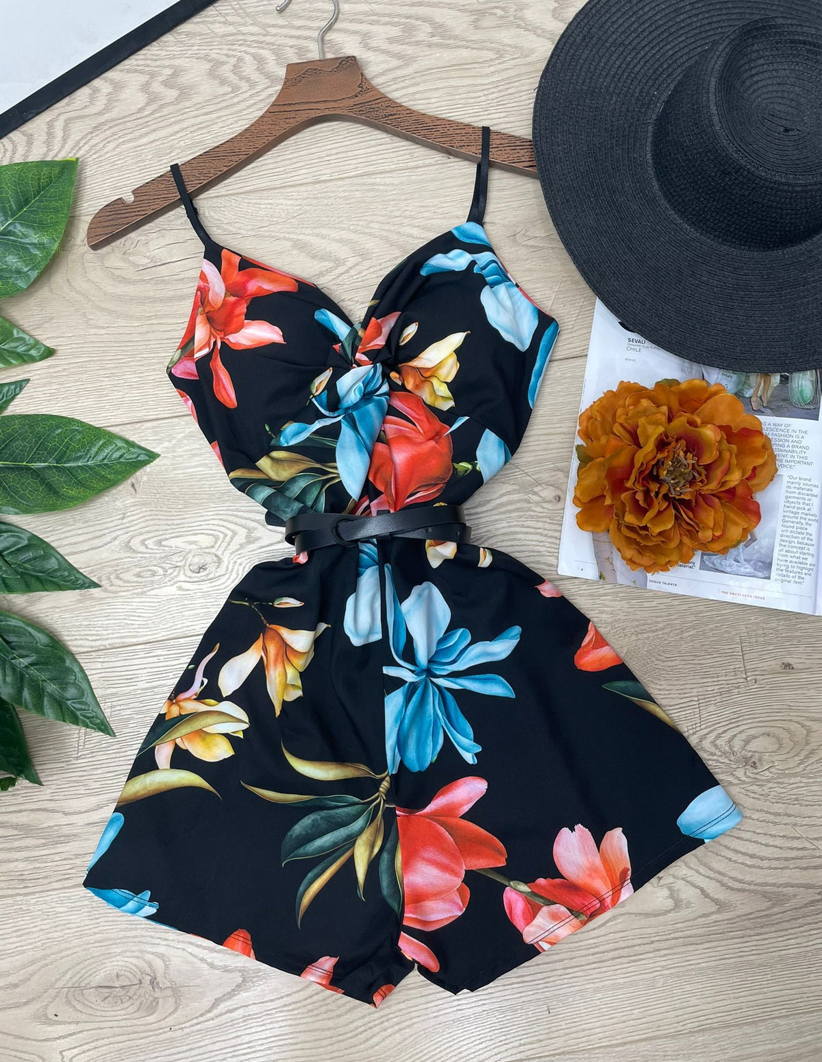 Tutina in leggero tessuto strutturato con fantasia floreale, coppe preformate, spalline regolabili e fascia elastica sul retro. Fabbricato in Italia.